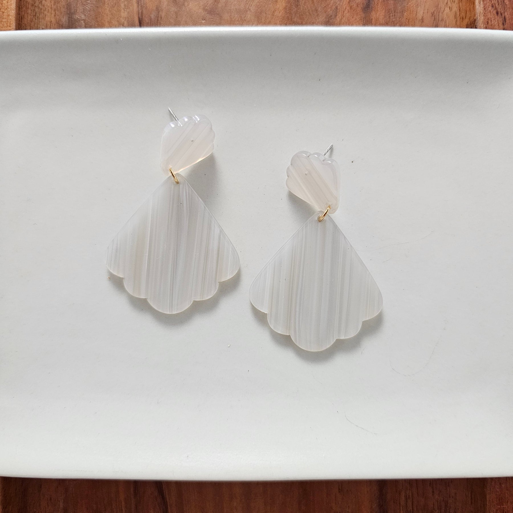 Make a splash with our Ariel earrings! Inspired by seashells, these scalloped acrylic earrings are a stunning addition to any outfit.. Perfect for a day at the beach or a night out on the town, these earrings are sure to catch some attention and make you feel 'spe-shell'. 🐚