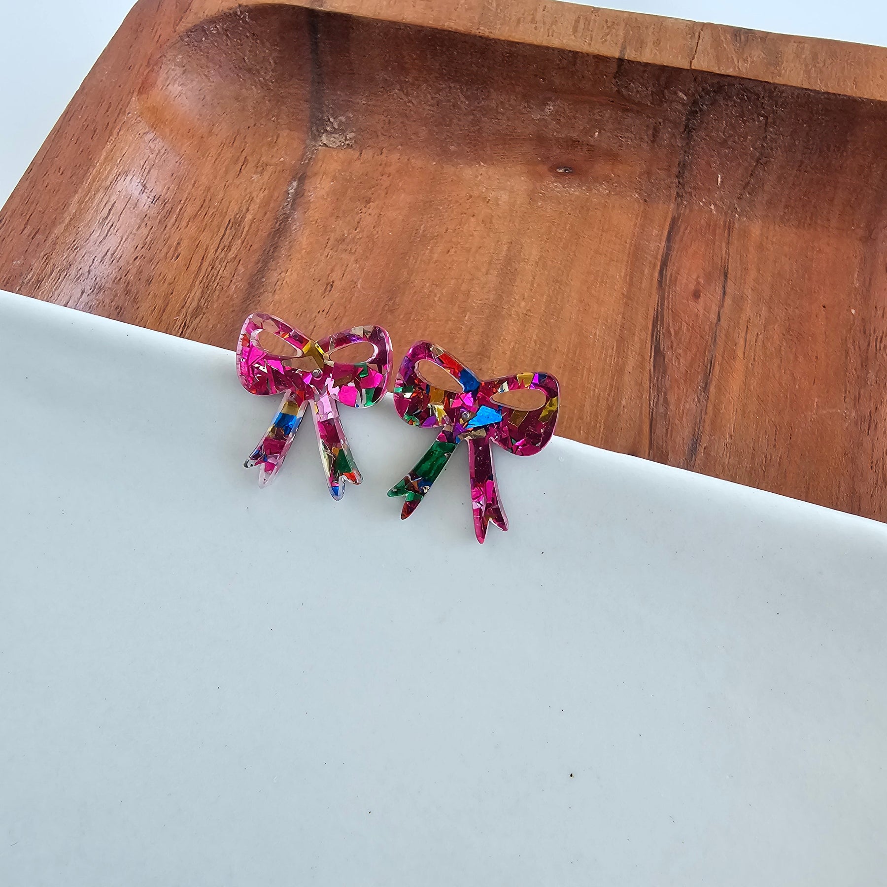 Not only are our sparkly confetti Bow Studs the perfect accessory for yourself, but they also make a thoughtful and festive gift for friends, family, and loved ones. Spread the holiday cheer with our Bow Studs 🎁🎄✨