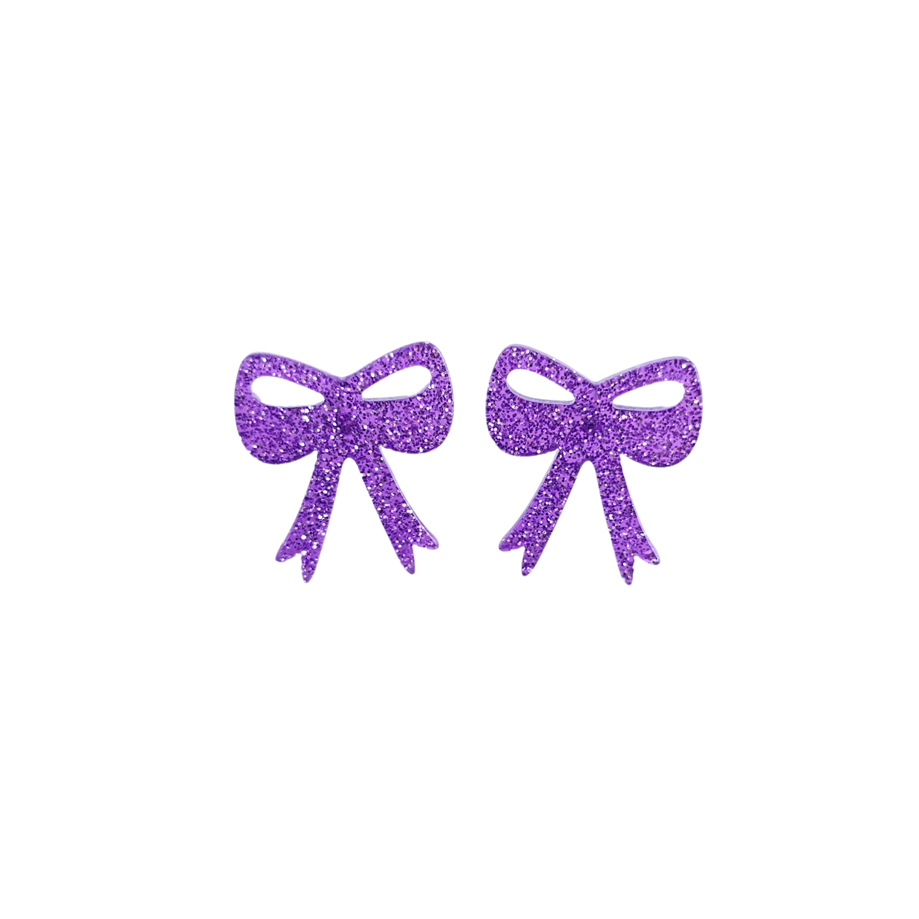 Get ready to add some sparkle and shine to your game day look! These glitter bow studs will make you stand out in the crowd and add some fun to your outfit. Perfect for showing off your team spirit in a unique and stylish way. You'll be the talk of the tailgate with these playful and on-trend earrings!