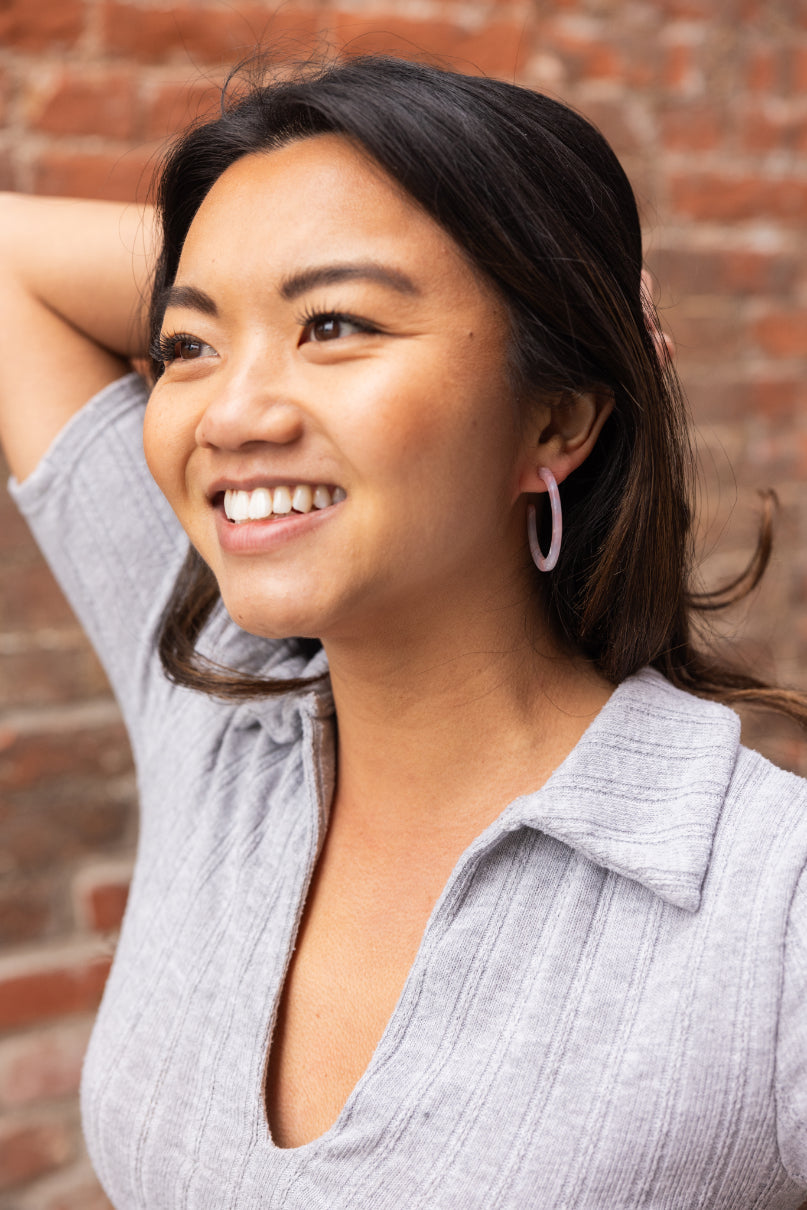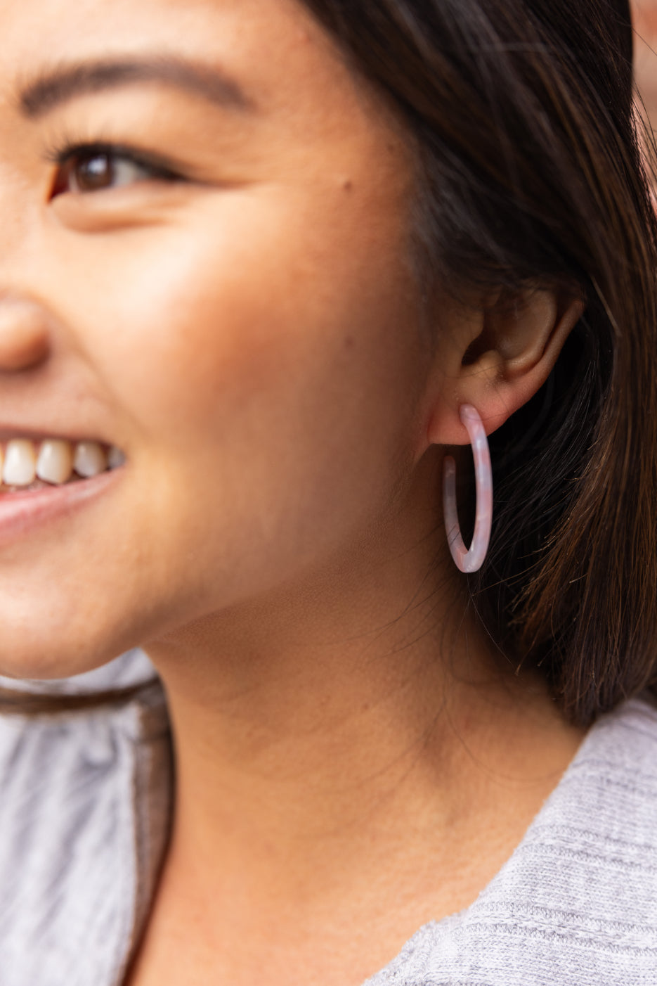 Camy is our medium sized hoop. Our signature ultra lightweight acrylics in gorgeous colors make them the perfect go-to wardrobe staple.