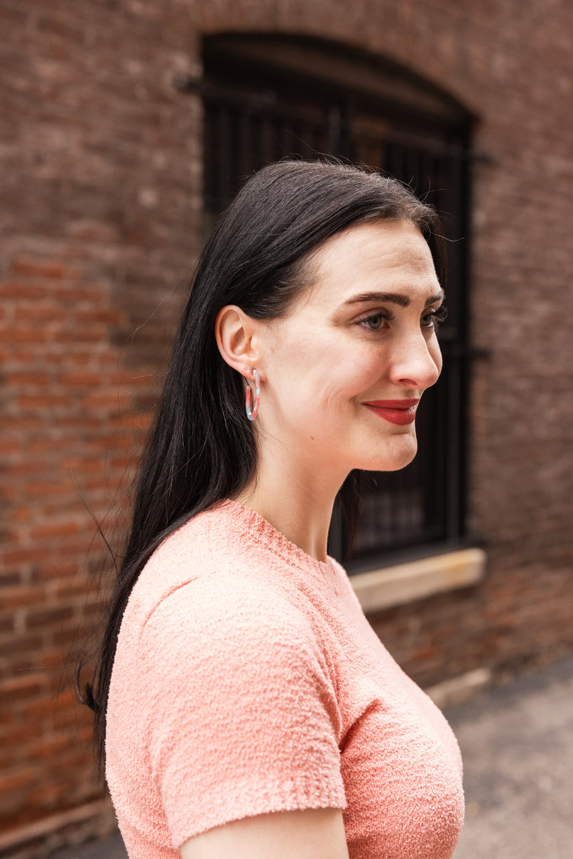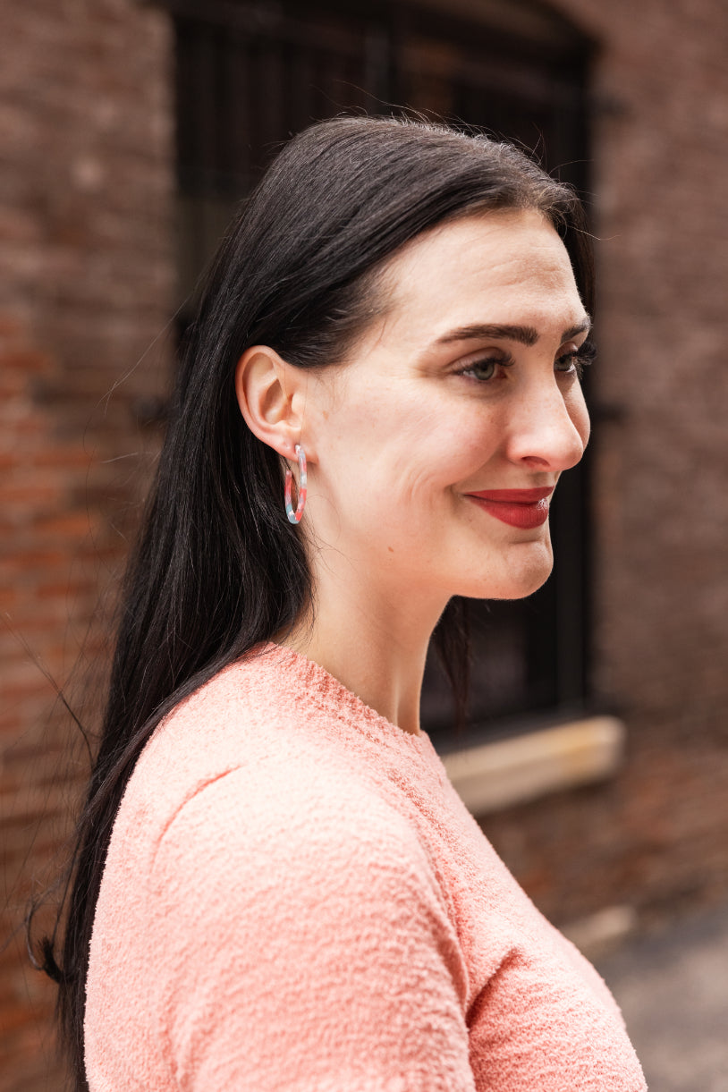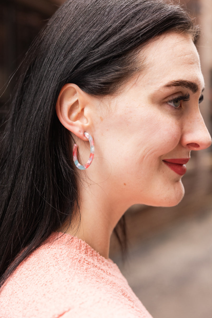 Camy is our medium sized hoop. Our signature ultra lightweight acrylics in gorgeous colors make them the perfect go-to wardrobe staple.