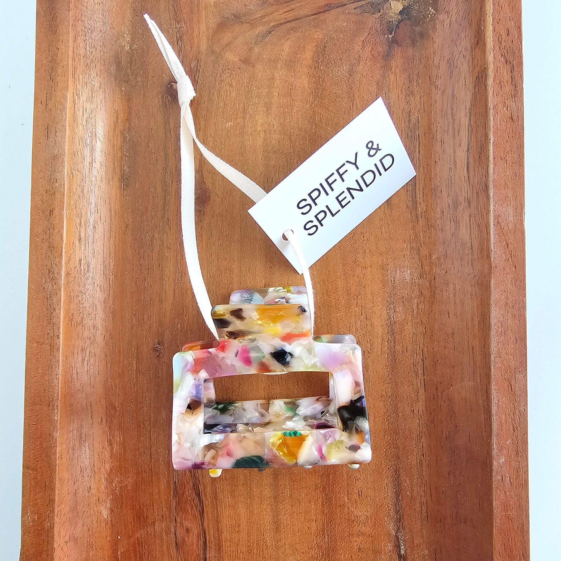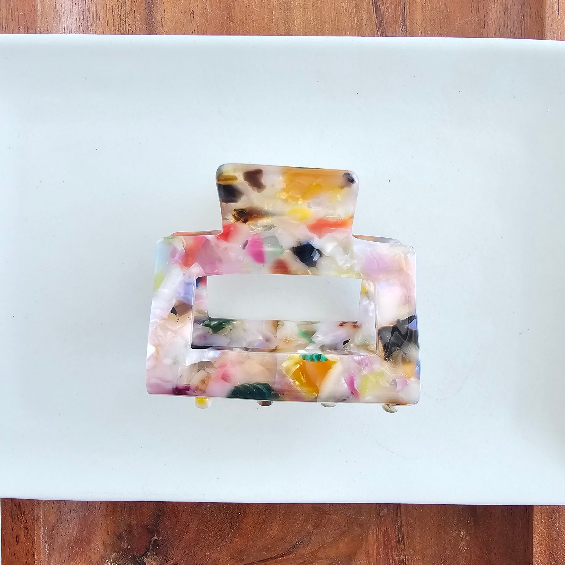 • Plant-based acetate acrylic hair claw with a clear protective cover over the spring.