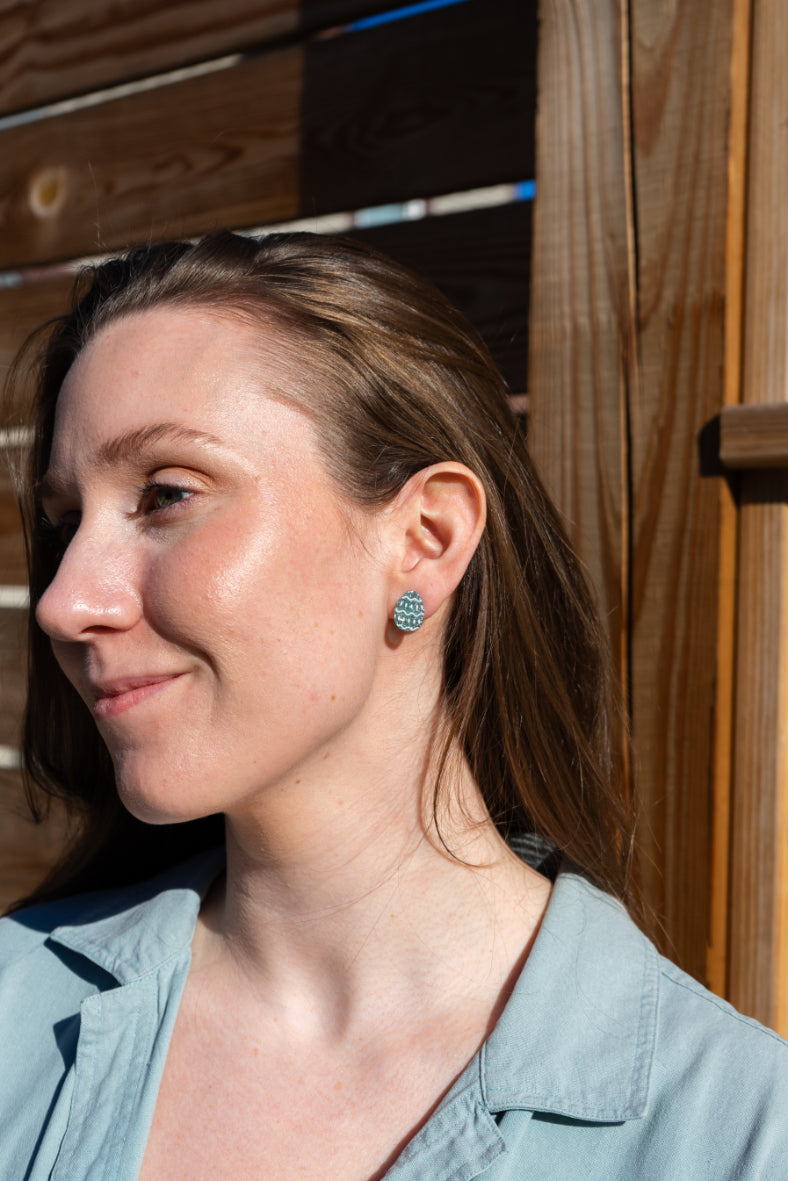 Get ready for an egg-cellent Easter with our Pastel Blue Glitter Easter Egg Studs! These sparkly studs feature a cute design on the egg, adding a touch of whimsy to your holiday look. Perfect for any Easter celebration, these earrings will have you hopping with joy!