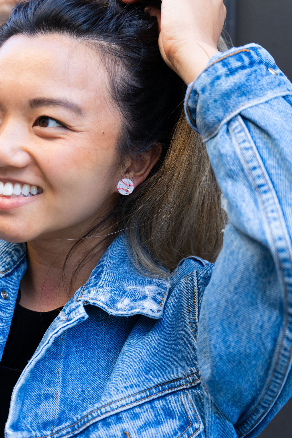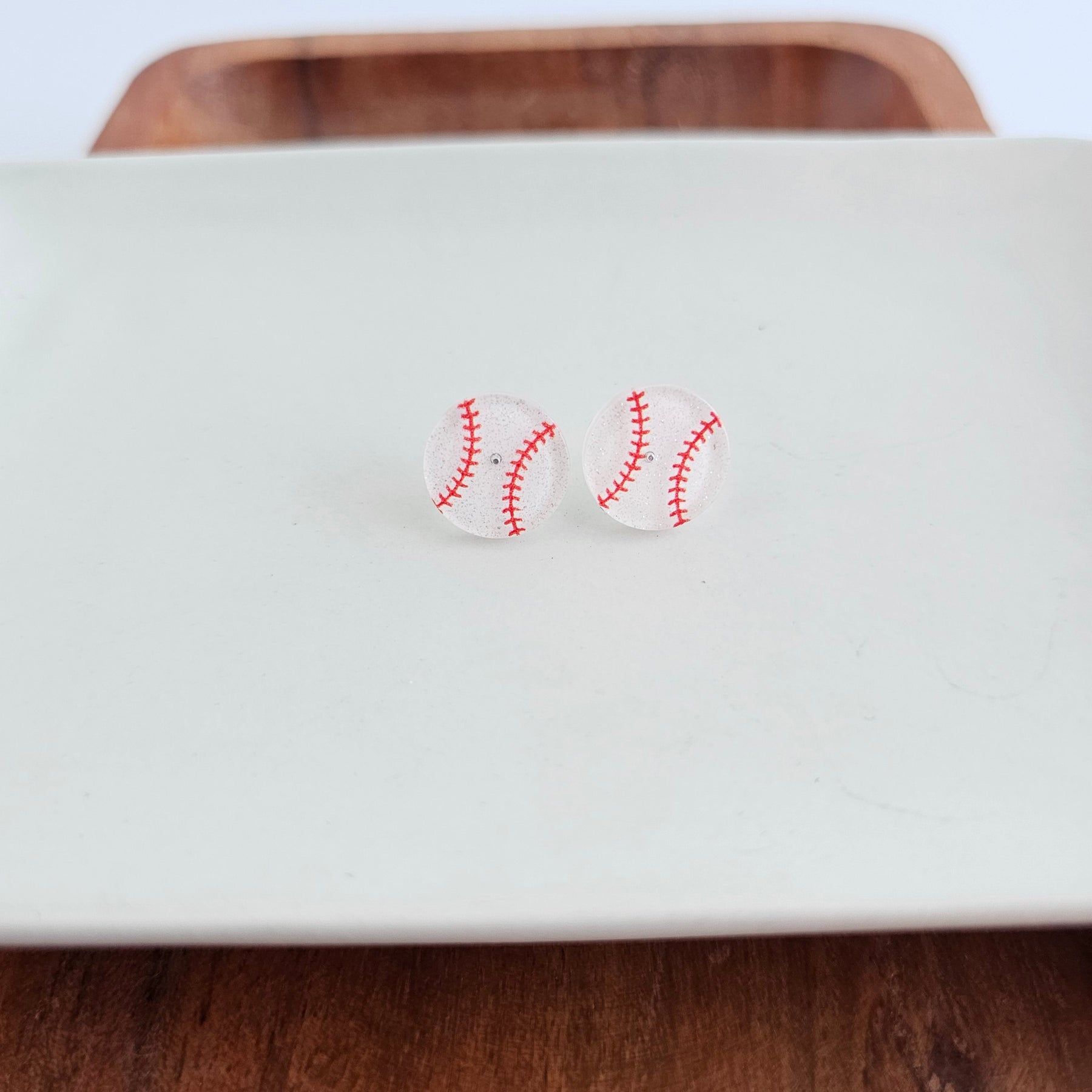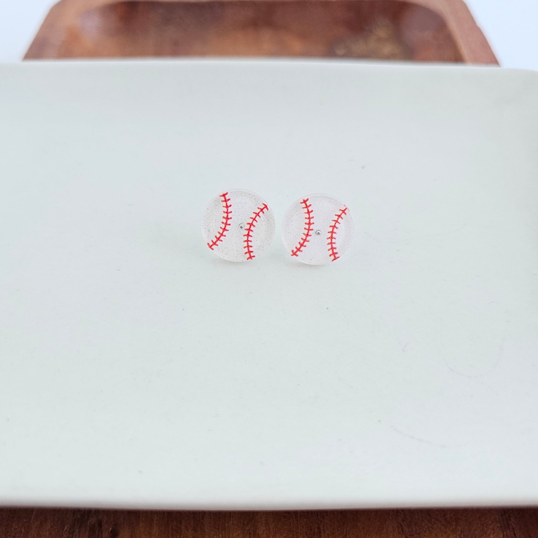 Hit a home run with these Glitter Baseball Studs. Made with sparkling glitter, these studs add a touch of bling to any outfit. Perfect for baseball fans and fashionistas alike.