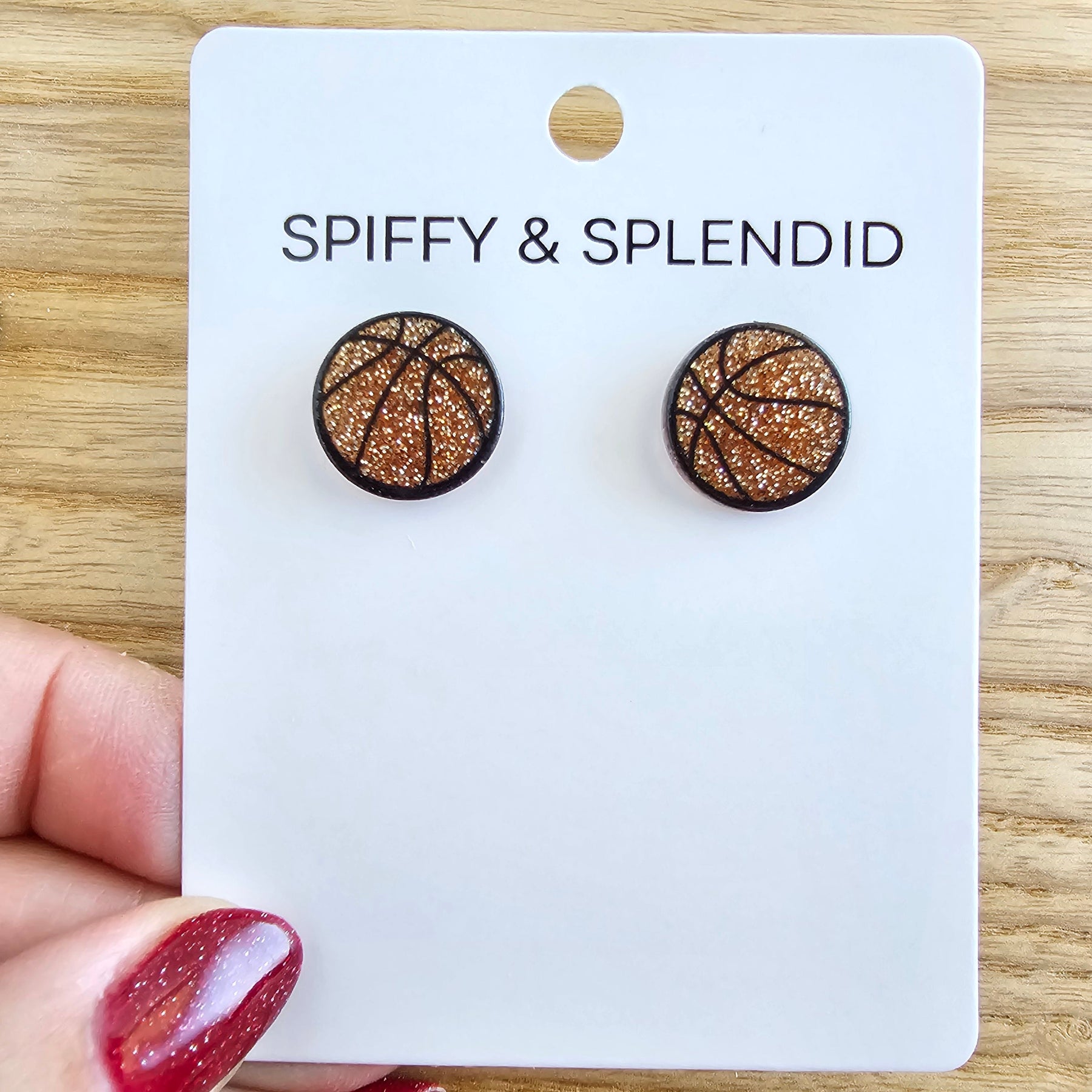 Step up your style game with these Glitter Basketball Studs! These sparkling earrings are perfect for basketball lovers or anyone looking to add a touch of glam to their game day look. The glitter adds a playful element to your outfit, making you the star of the court. Game on!