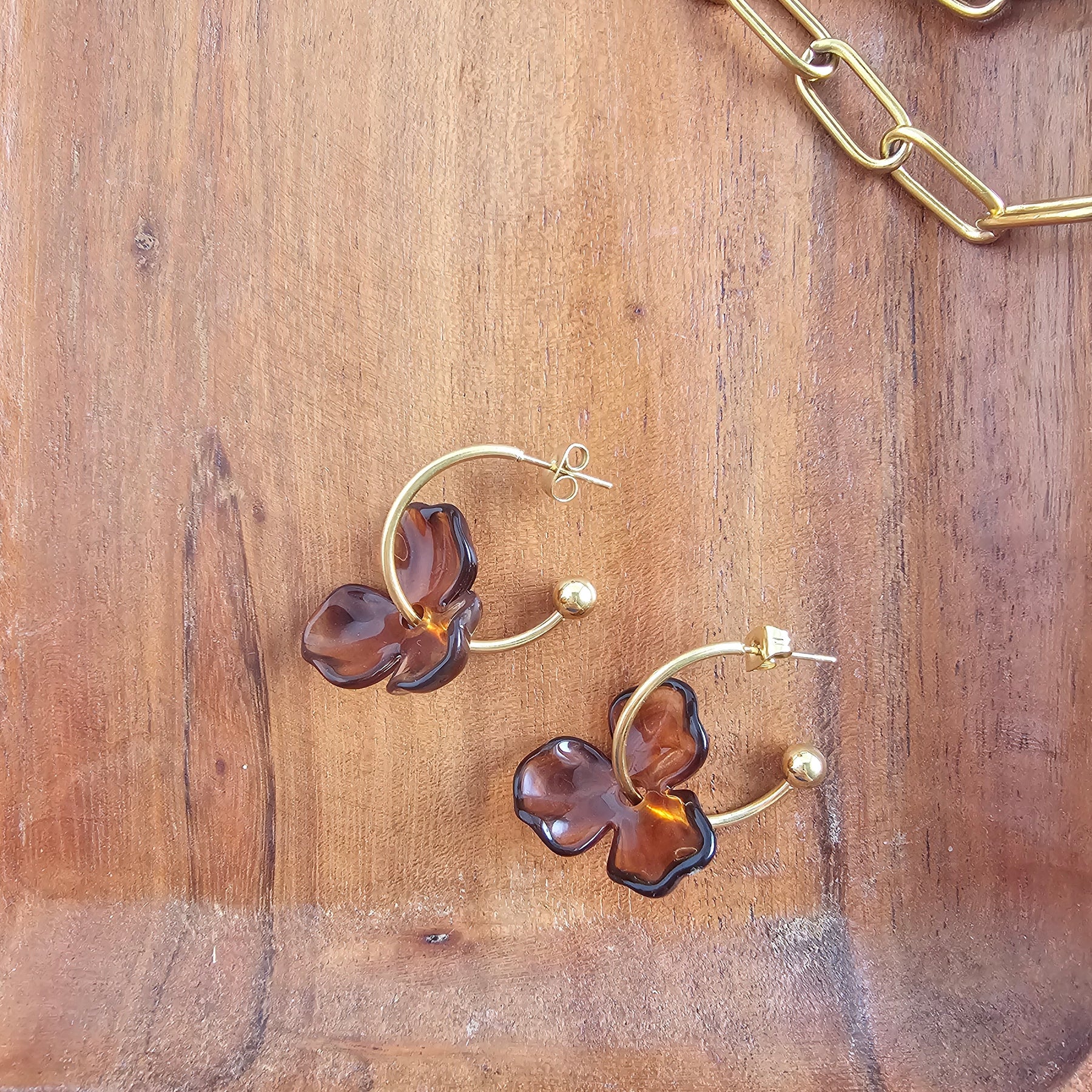 Add a fun twist to your hoop collection with our Magnolia Hoops in Amber! Featuring sleek gold hoops adorned with stunning resin flowers, these earrings bring a bold pop of color to any look. Perfect for turning heads and leveling up your style, they’re the ultimate accessory to stand out from the crowd.