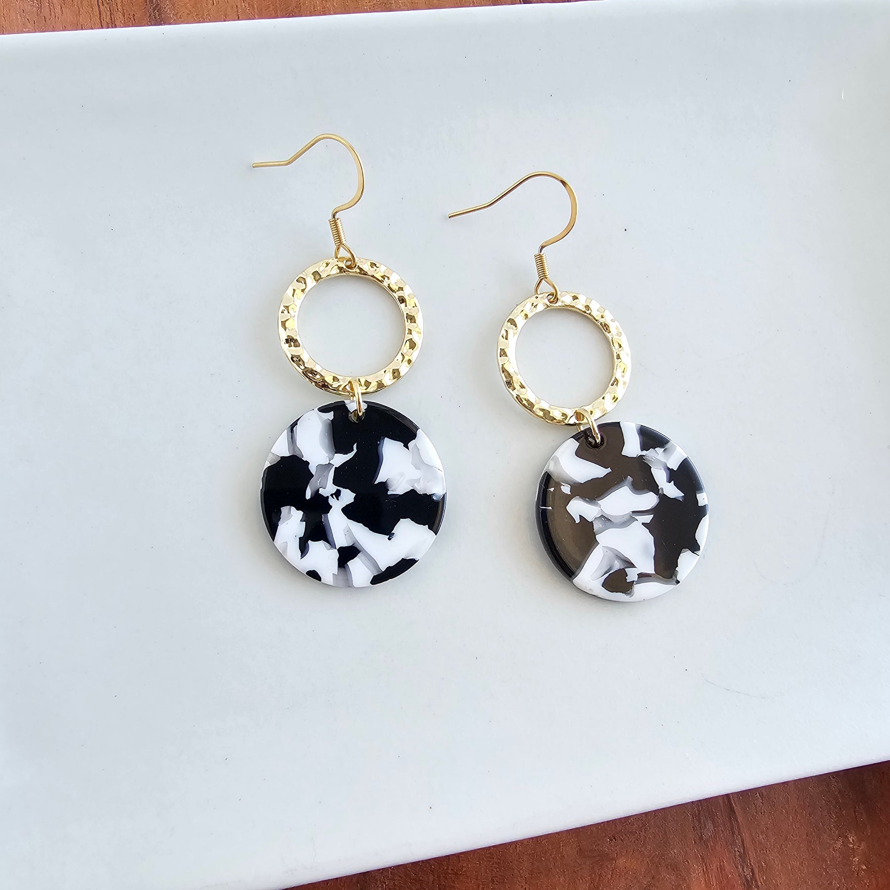 Add some "ear"-resistible style to your look with our Rylee Earrings in Black & White. These lightweight earrings feature stunning gold accents that will elevate any outfit. So go ahead and make a statement with these elegant yet playful earrings.