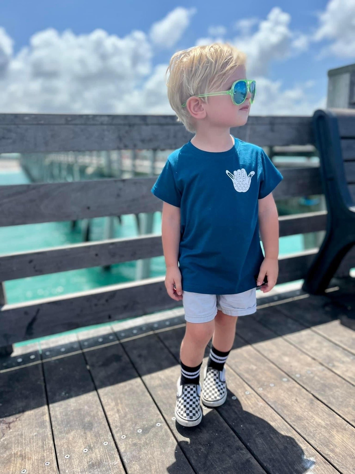 This T-shirt will become your kids favorite tee!! It’s a beautiful vibrant blue color on a one of a kind, exclusive Son & Co shirt. The screen print is so soft to touch. There is also no more neck tags!