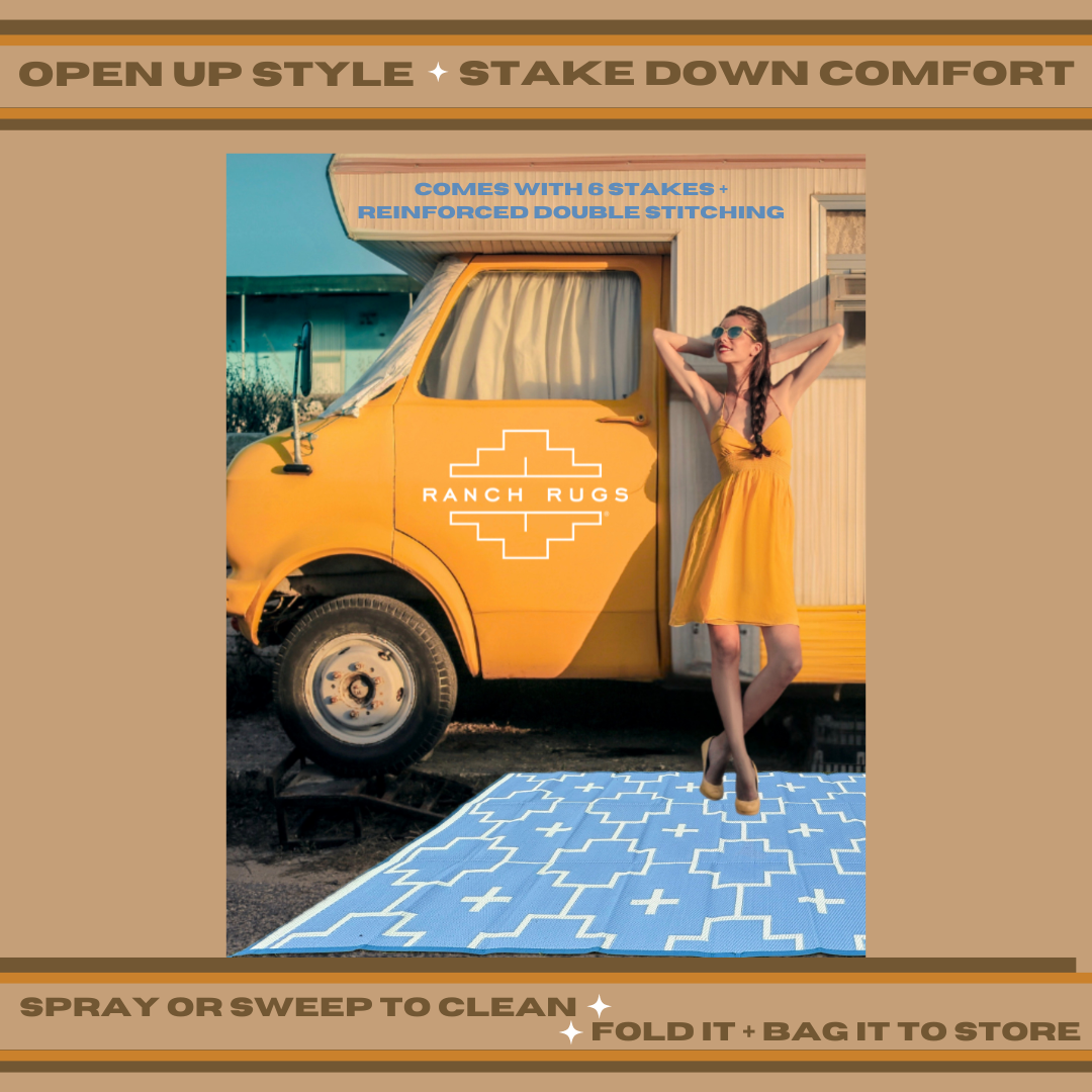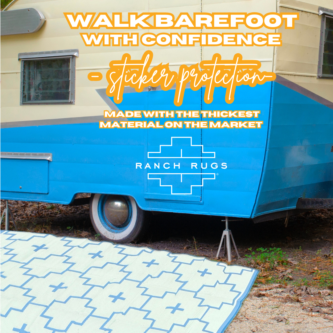 • Our RANCH RUGS are designed to provide a soft and cushioned surface, making it ideal for camping, glamping, and outdoor play.