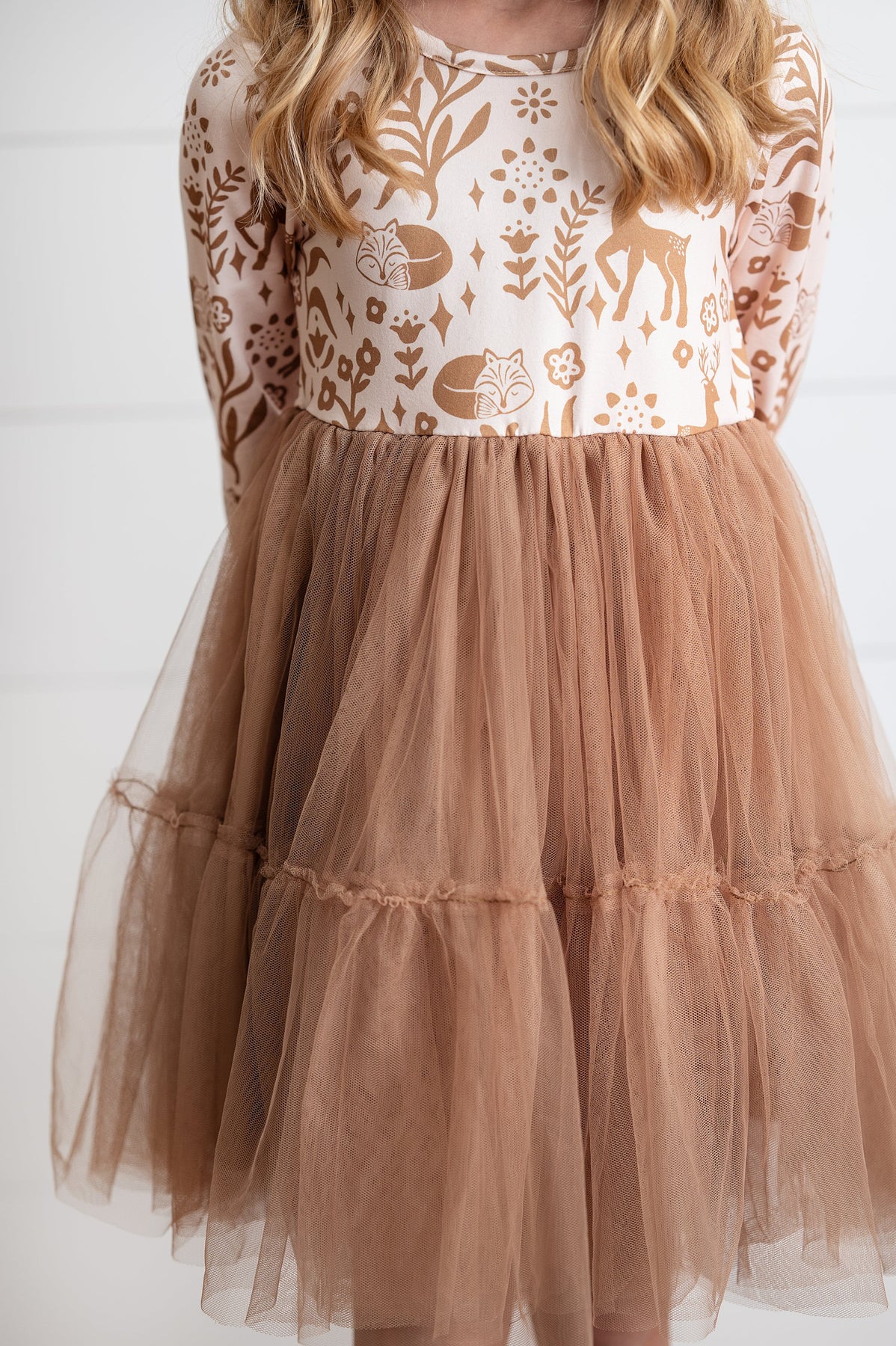 This Woodland Deer Tulle Dress brings a touch of magic to any little girl's wardrobe. Featuring a shimmering woodland forest animal motif and layers of soft, airy tulle, it’s perfect for twirling, playing, and making every day feel like a special occasion. Comfortable and charming, this dress adds a playful sparkle to birthdays, parties, or just because!