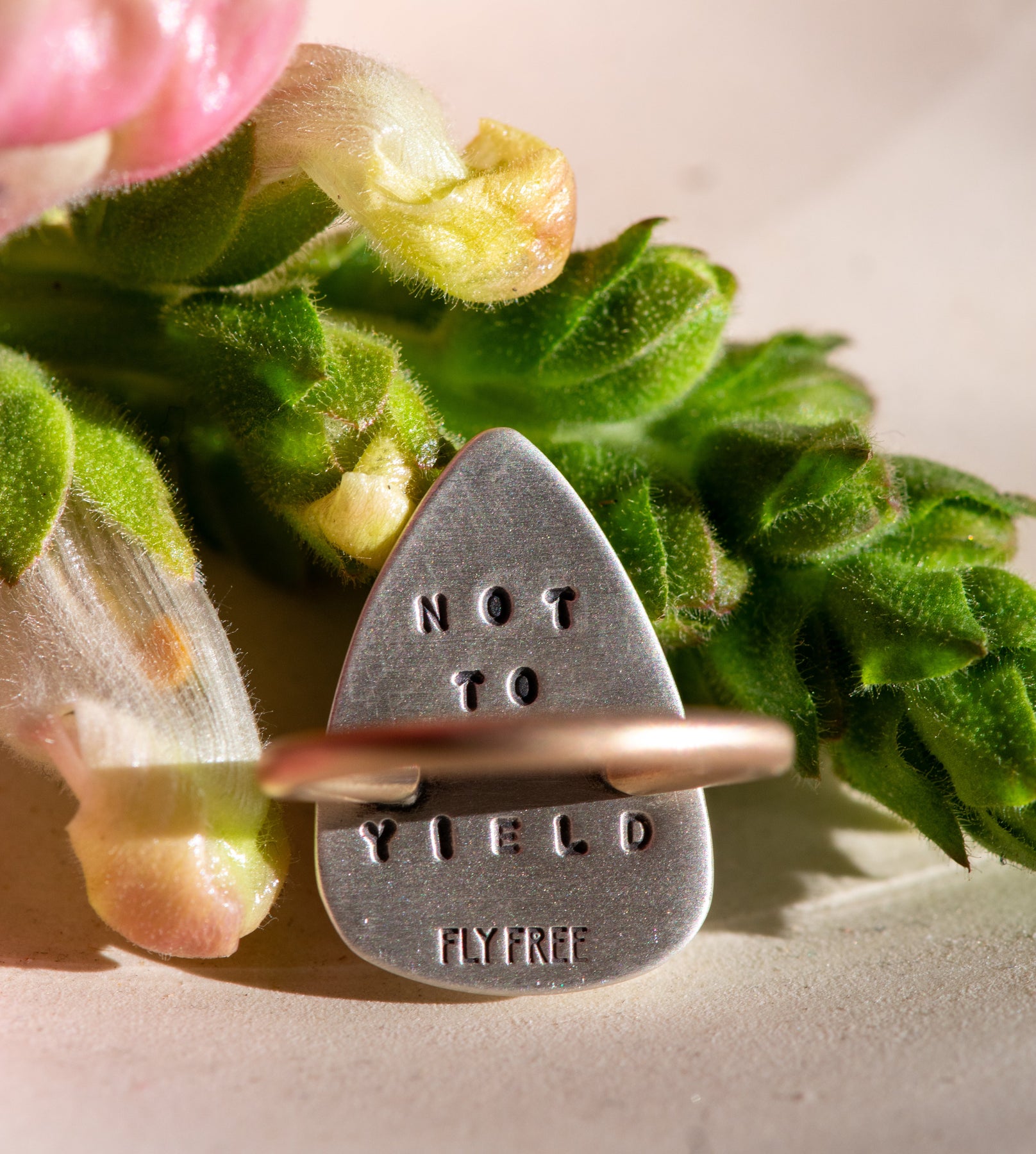 Rubellite tourmaline set in sterling with a gold-fill band.