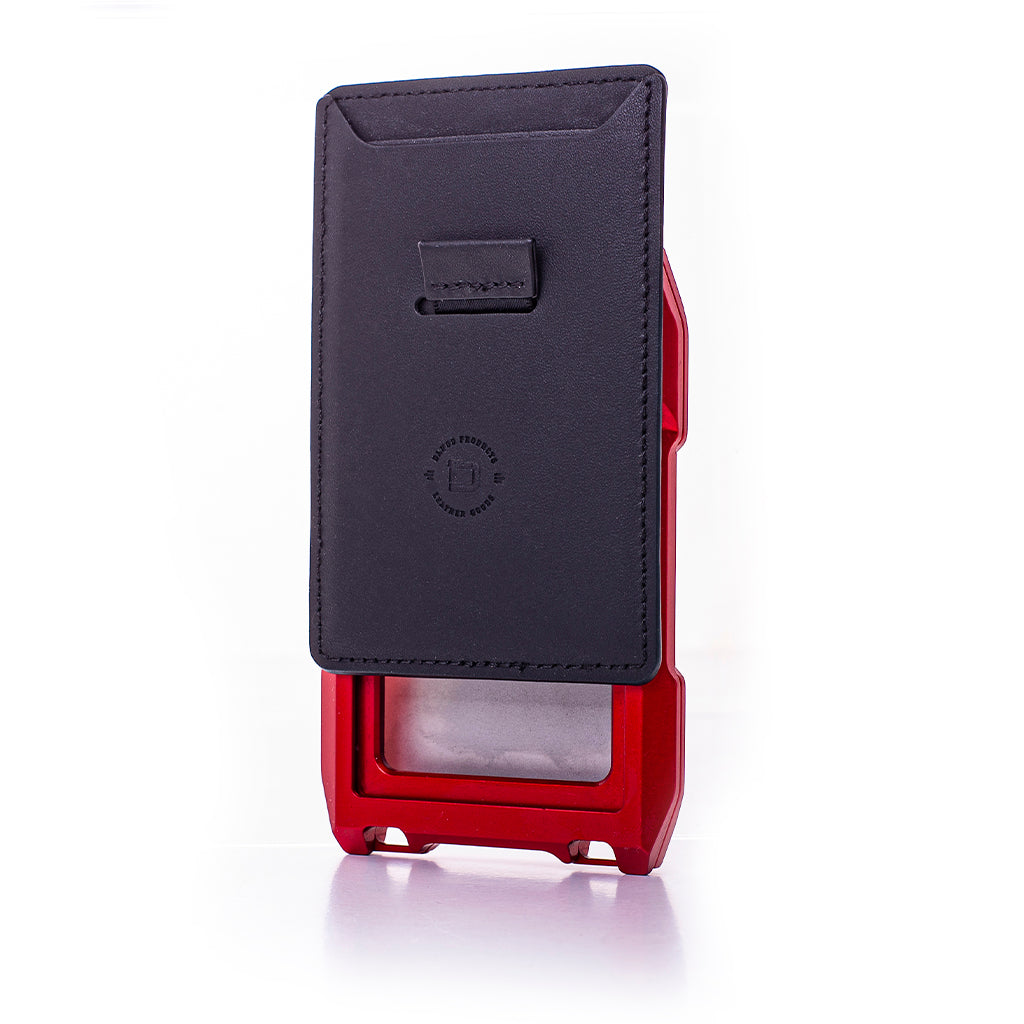 The A10 wallet chassis is made of machined 6061 aerospace grade aluminum and anodized in crimson red to perfection. The A10 is equipped with Dango’s popular and unique patent pending quick release rail mechanism on both sides of the wallet that allows easy access to cards while keeping them securely in place. On one side of the chassis is a horizontal cavity holding up to 4 cards and RFID protected by the backplate. On the other side is a vertical rail cavity for adapters or 1 open access card. Display identification cards, badges and any other cards that needs scanning; perfect for accessing secured buildings and boarding public transportation. In addition, the A10 Chassis Clip can be easily installed with a single screw to hold extra items like cash and notes. (sold separately)