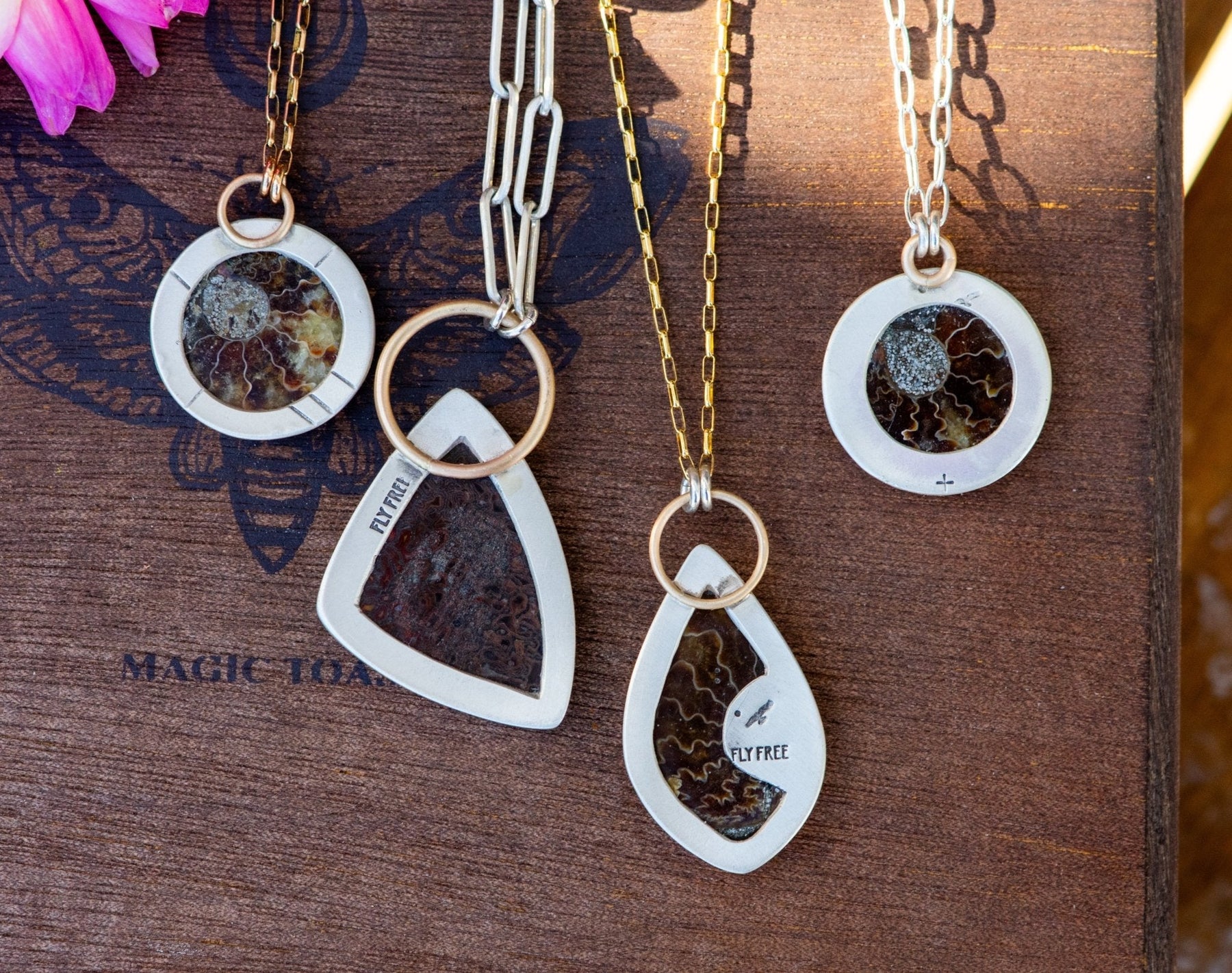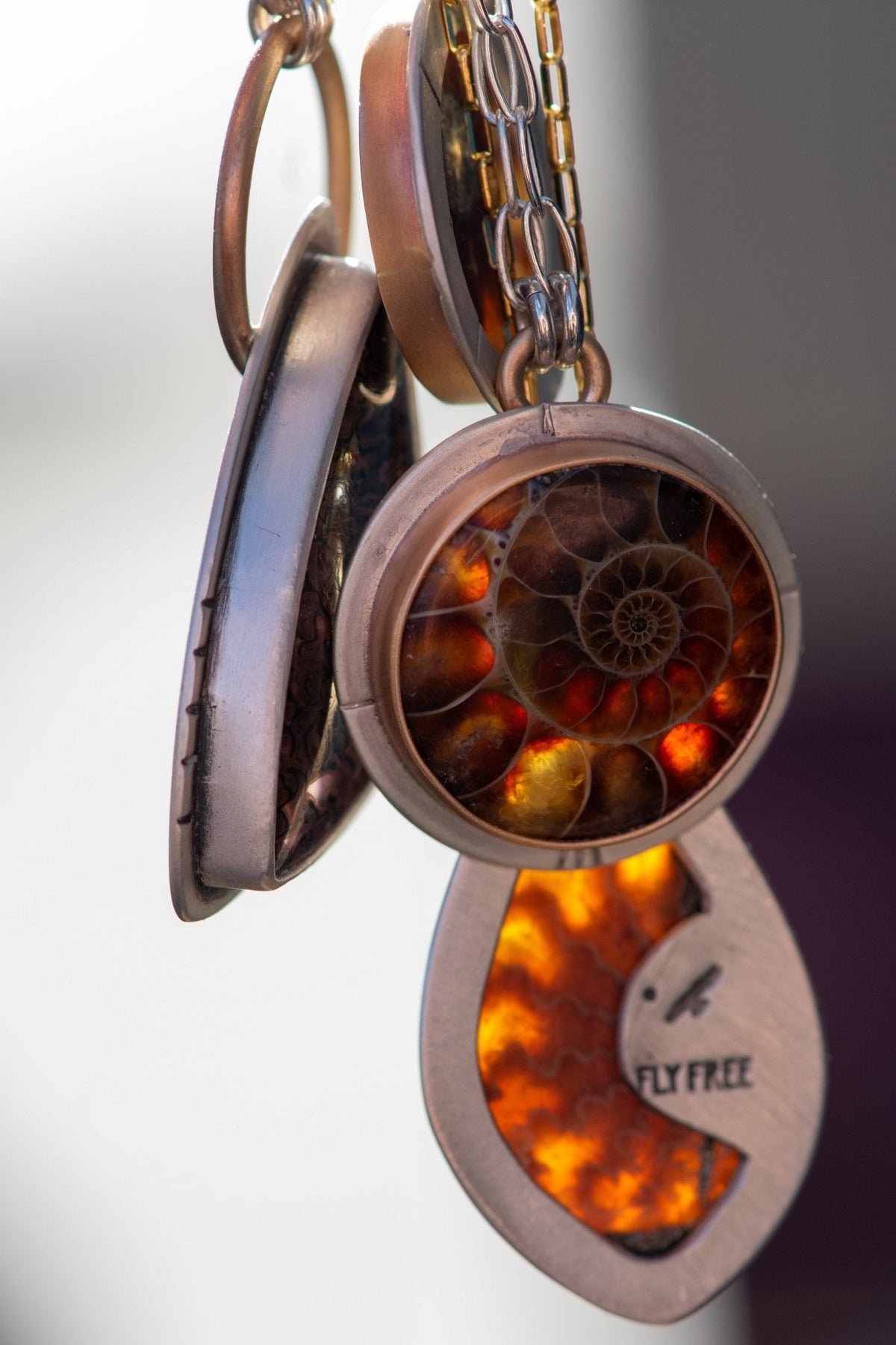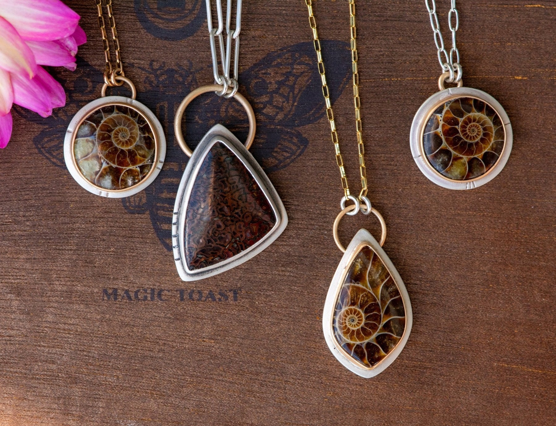 Fossils! Yeeeeow. Ammonites are an ancient cephalopod ancestors of octopus, squid and cuttlefishes. They had a good run for 300 million years, give or take, but didn't make it through the K-Pg extinction event about 66 million years ago. Those are the spiral ones. An incredible piece of dinosaur bone snuck in there though. I feel so lucky to spend time with these ancient pieces, links to our past.