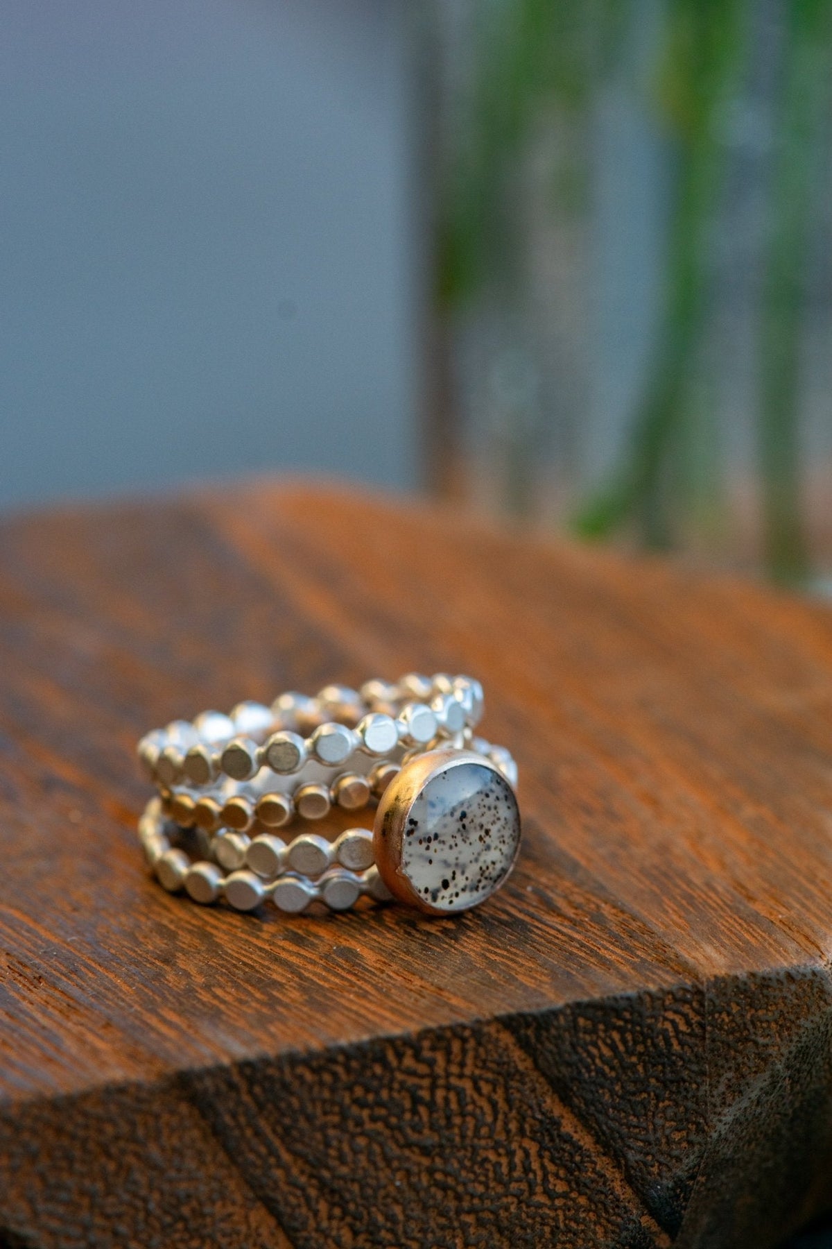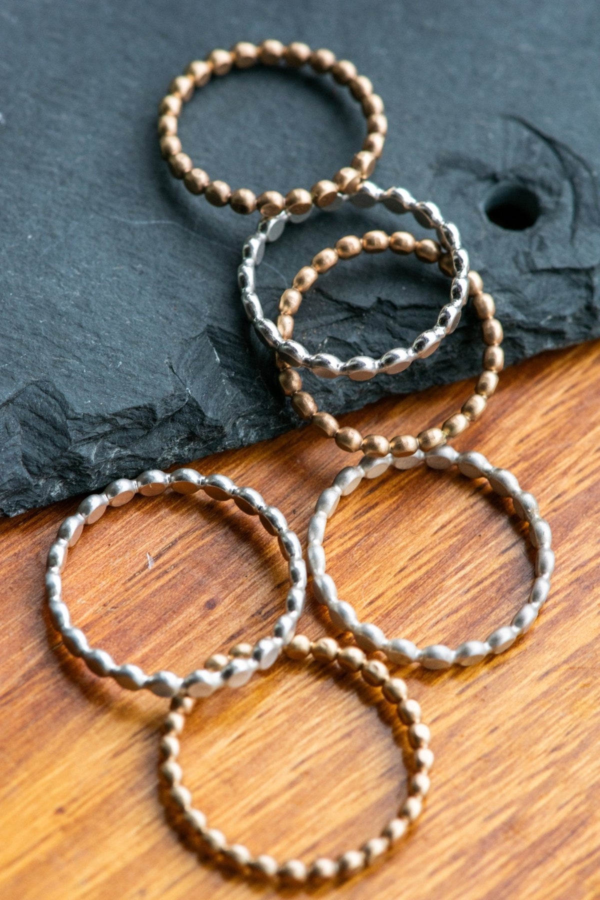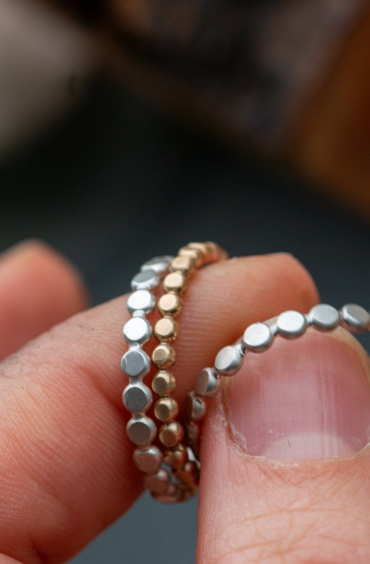 I'm a fidgeter. Stackers are the original fidget spinners haha. I like to mess with my rings, making different patterns and combos. So I made a bunch of bands! Out of round patterned wire, sterling silver or gold-fill.