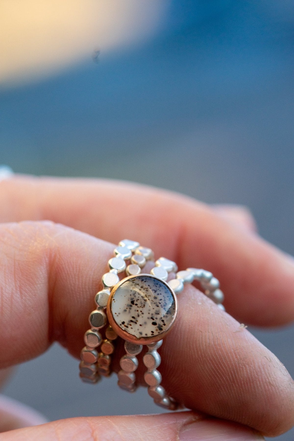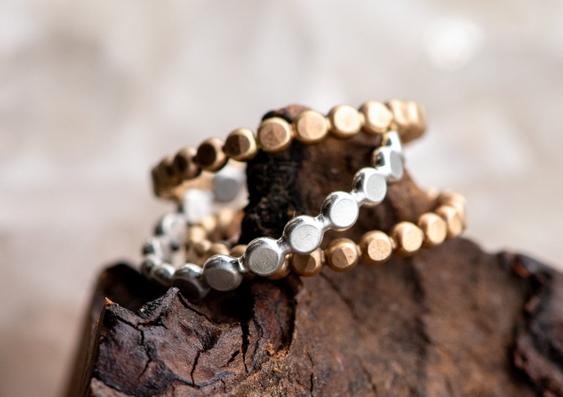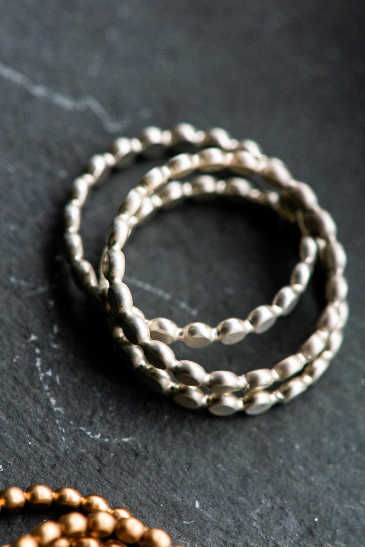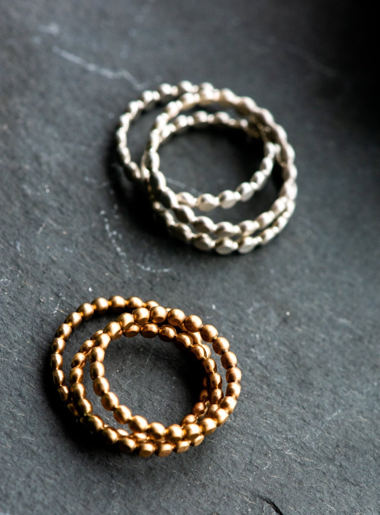 I'm a fidgeter. Stackers are the original fidget spinners haha. I like to mess with my rings, making different patterns and combos. So I made a bunch of bands! Out of round patterned wire, sterling silver or gold-fill.