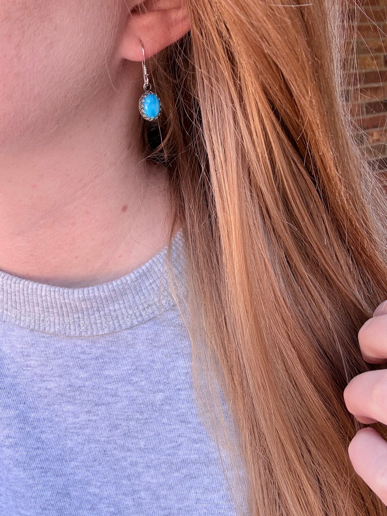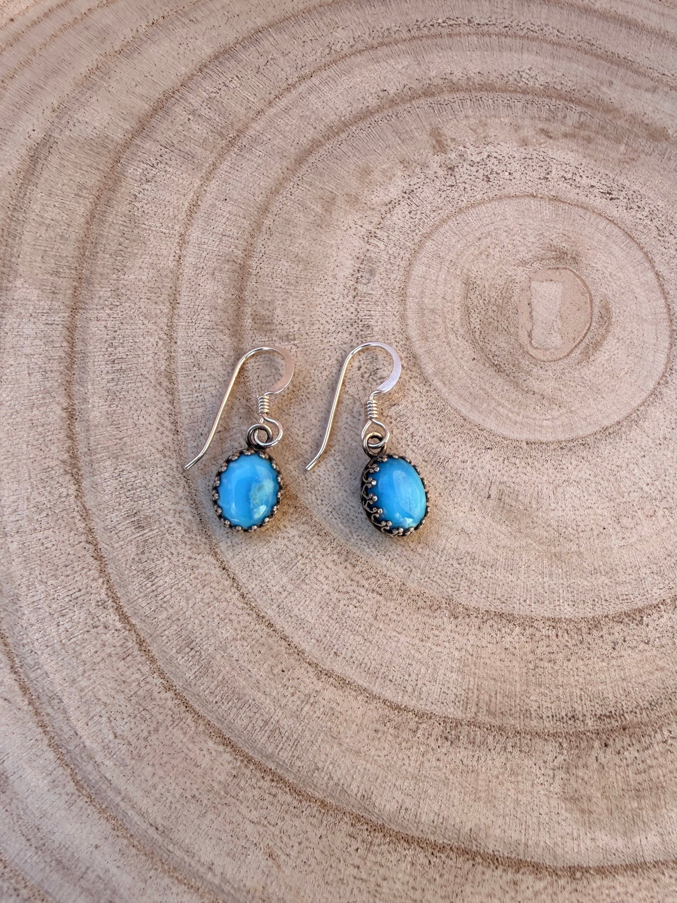 Crown Bezel Oval Drop Earrings | Kingman Turquoise + .925 Sterling