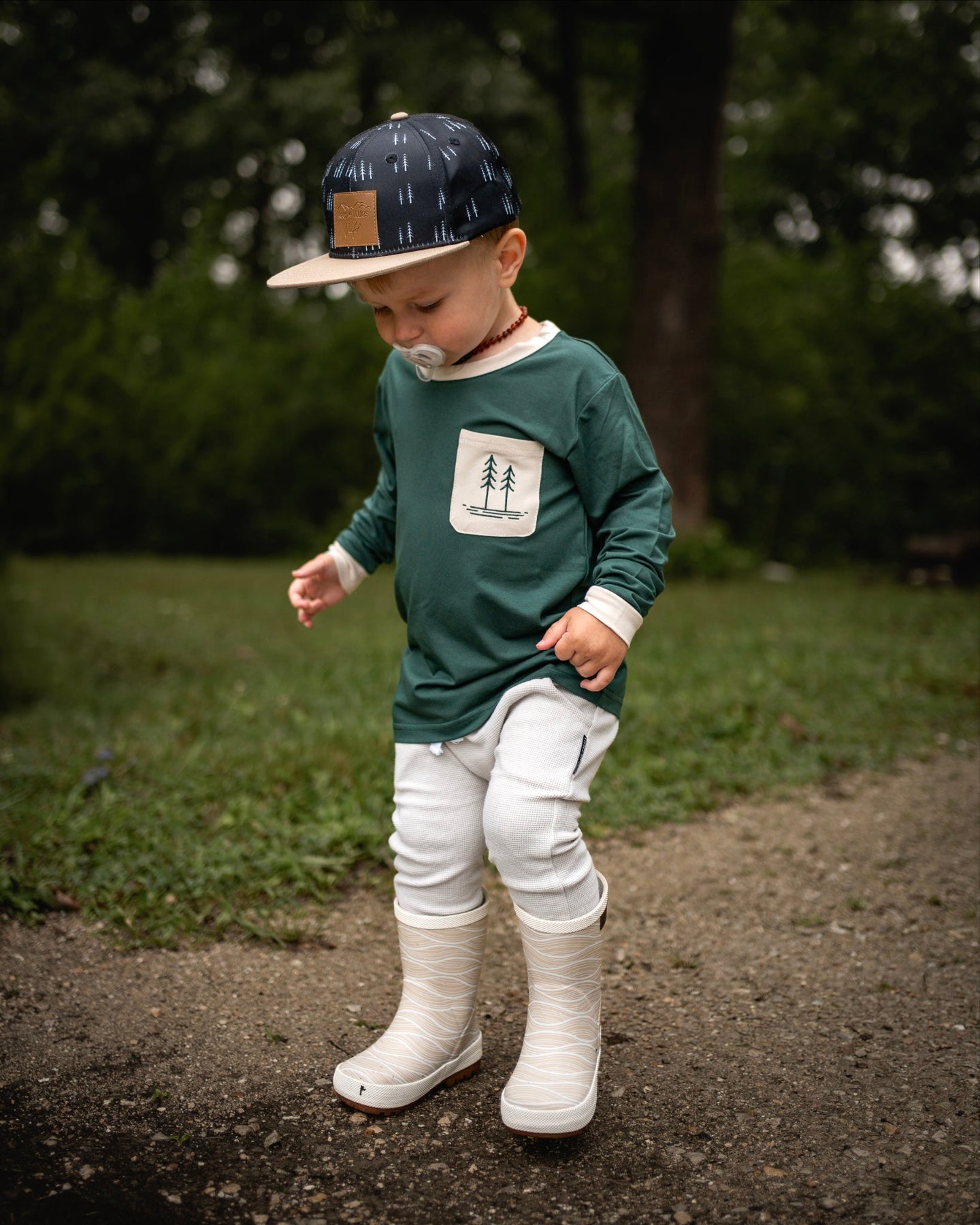 This green 260 GSM Bamboo long sleeve shirt is the perfect fall shirt. It is buttery soft and perfect for all the adventures for your little! It is 95% viscose bamboo and 5% spandex so it stretches for an easy fit.