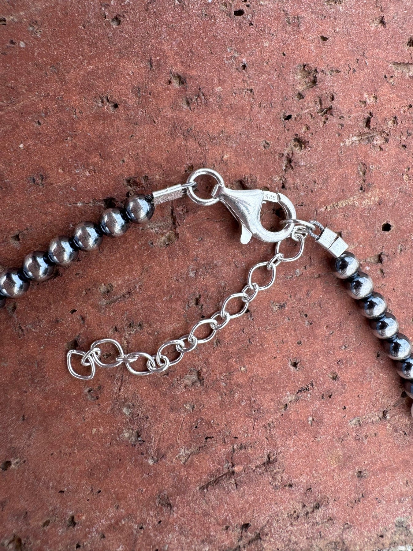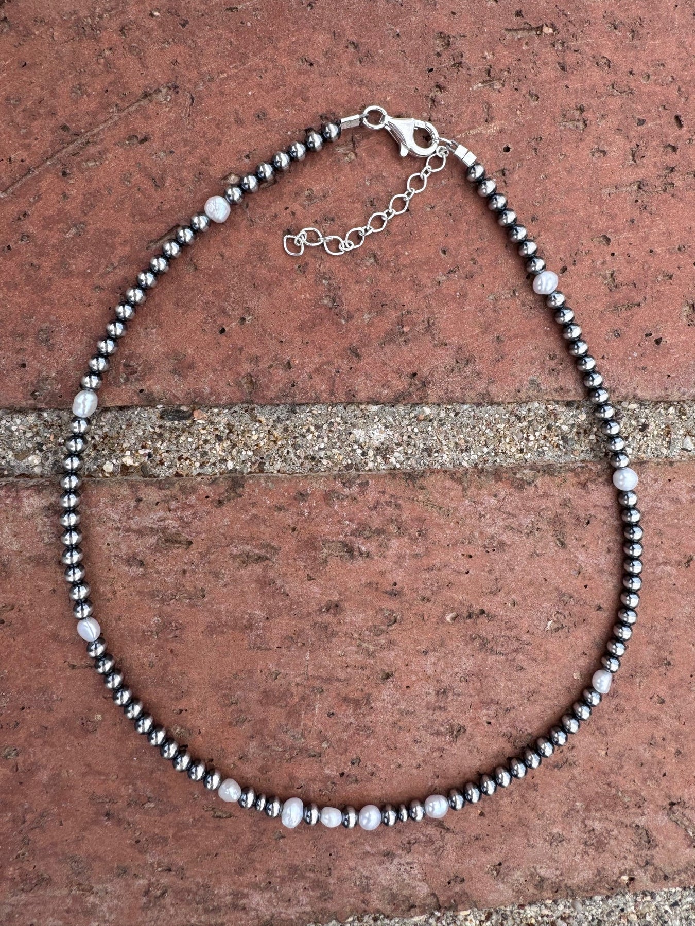 Handcrafted Mother of Pearl & Sterling Silver Pearl 4mm Beaded Necklace 16"