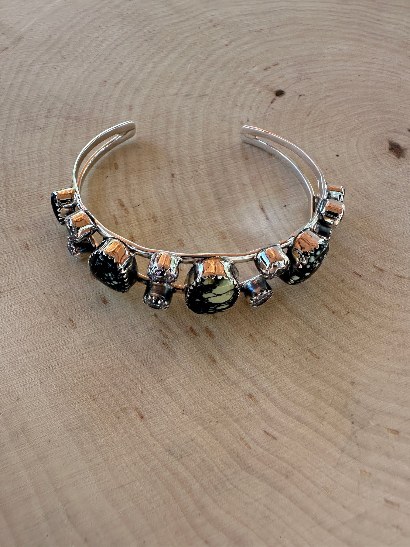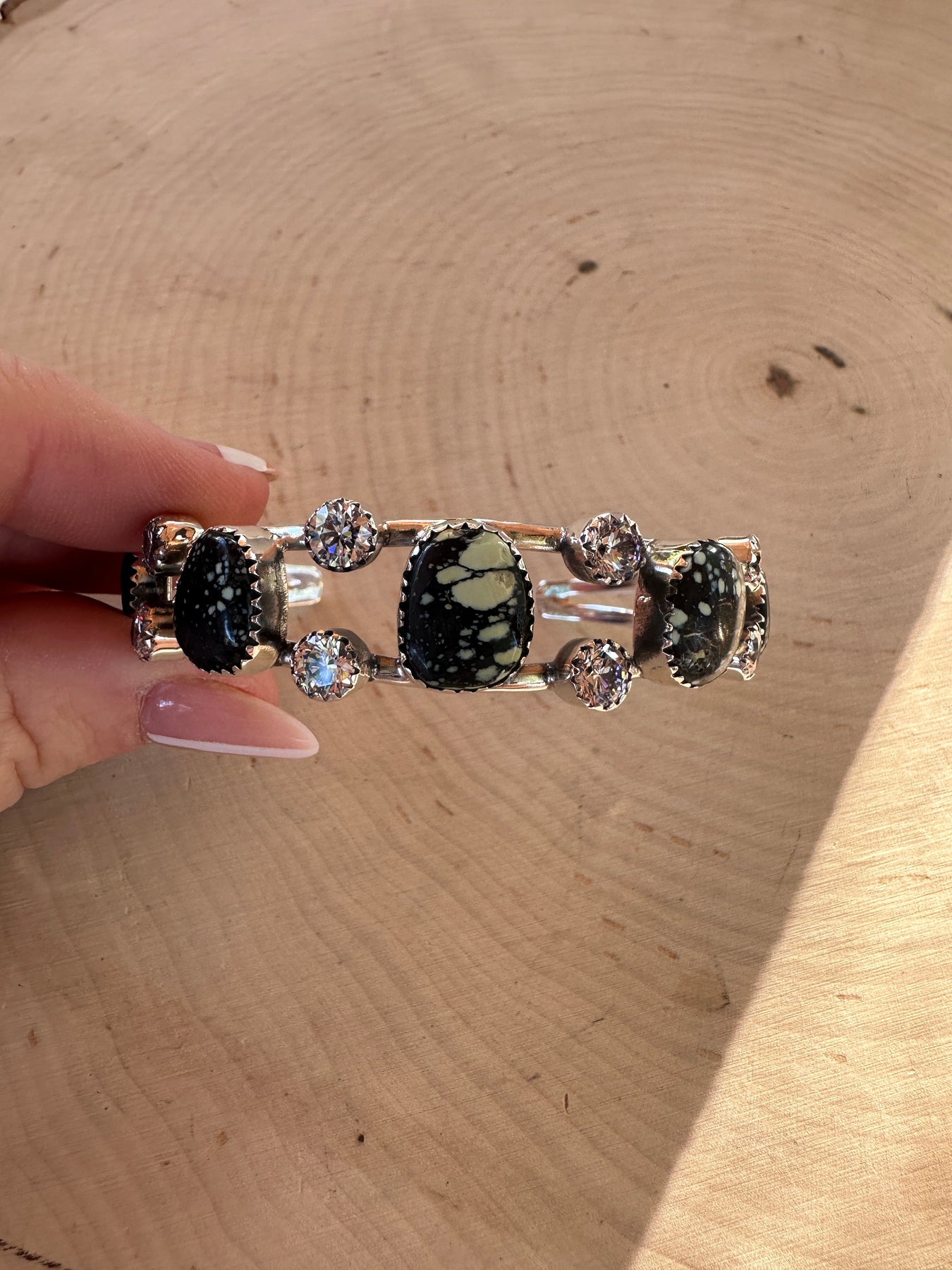 Handmade Sterling Silver, CZ & New Lander Turquoise Cuff Bracelet.