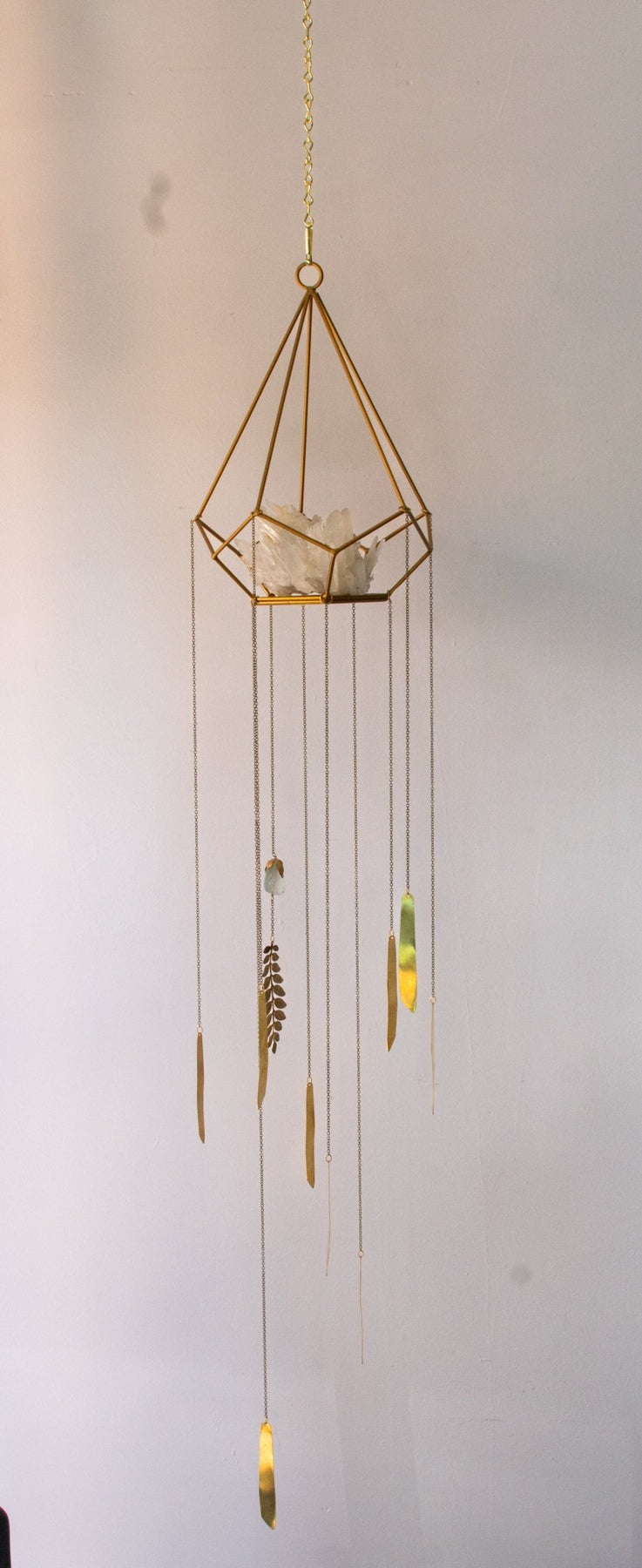 My mind likes resting here the most during the day. A quartz formation and a glowing aventurine and lots of brass. Brass is an alloy of copper and zinc and it has had an incredible impact on our human story. The frond is giving Minoan excellence.