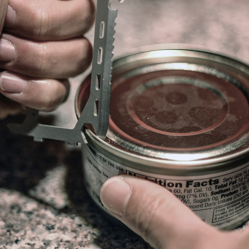The Dango MT02 Multi-Tool has index points that lock safely into the chassis. This allows the wallet and multi-tool to offer several functions. The first row of engagement reveals a serrated and sharpened edge. Engage to the second row and you can fit your fingers into the multi-tool and grip the wallet as a handle for more leverage. If more space is required, the multi-tool can be engaged to the leading edge of the wallet frame. To use the multi-tool's other functions, simply flip it around. The multi-tool serves over 14 functions. To stow it again, the flat side of the multi-tool is faced on the backside of the wallet with the thumb tab pointed up.