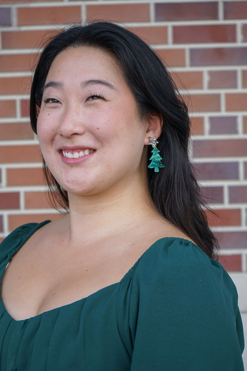 Star Christmas Tree Earrings - Green Shimmer