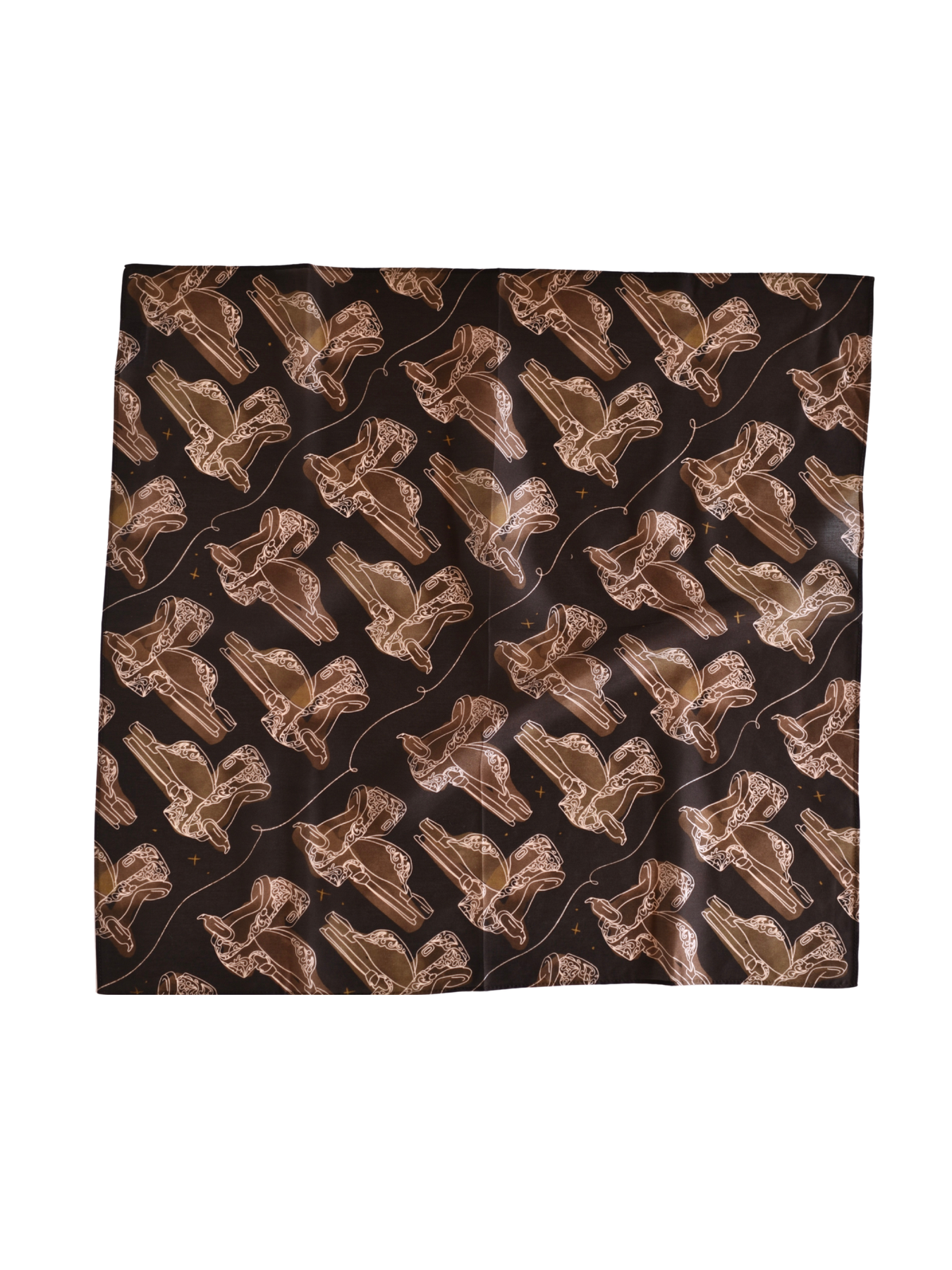 Western Saddle in Arena Brown Cowgirl Silk Scarf Wild Rag
