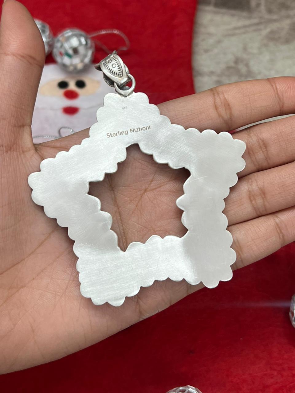 "Christmas Collection" Handmade Sterling Silver Red Opal with White Buffalo Pendant " Signed Nizhoni"