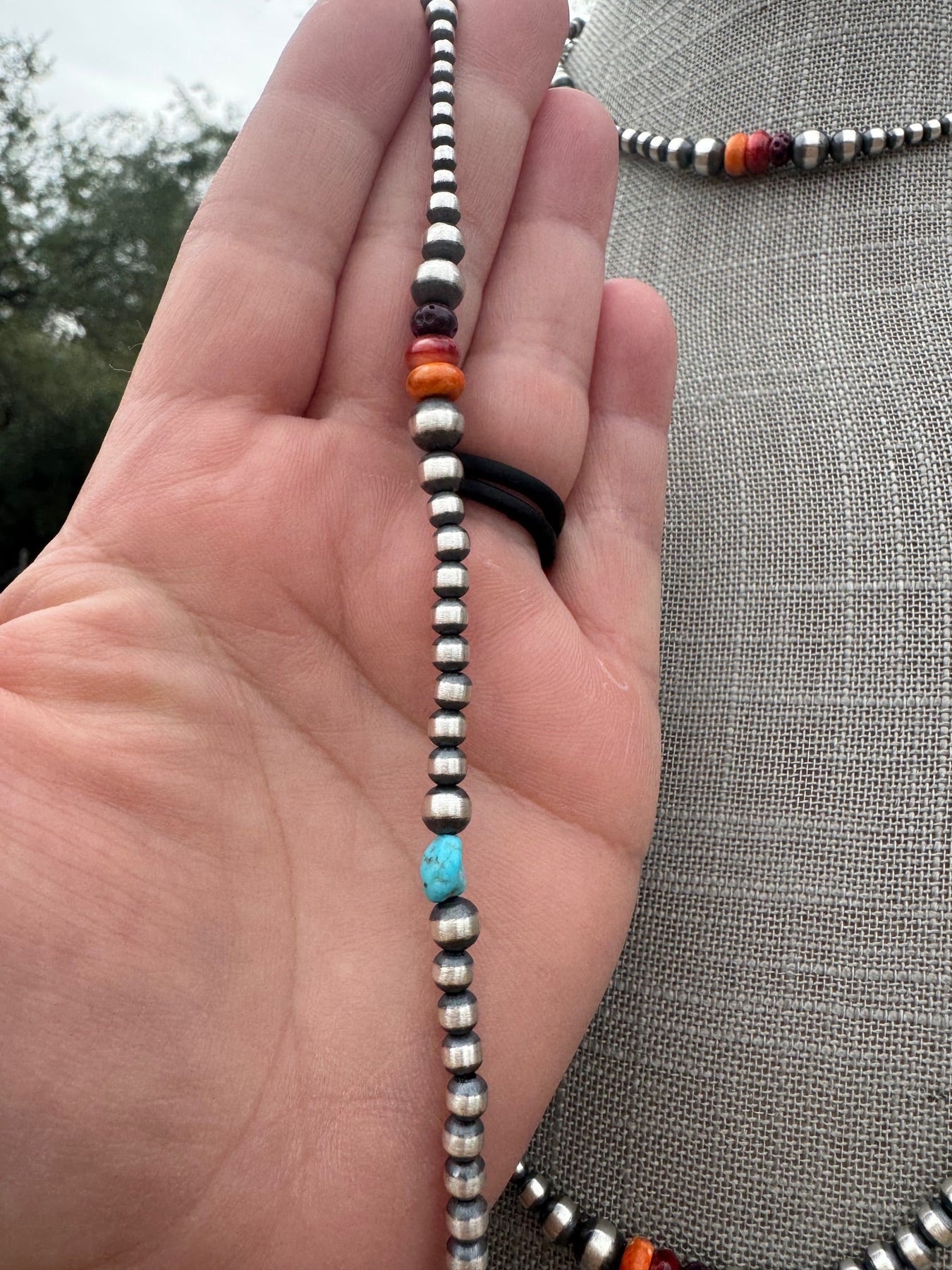 Gorgeous Handcrafted Multi Stone and Sterling Silver Beaded Necklace. Beads measure 3-5mm, Necklace measures 72 inches long. Perfect for any collection. Such a beautiful necklace! This listing is for 1 strand only, multiples are for display.