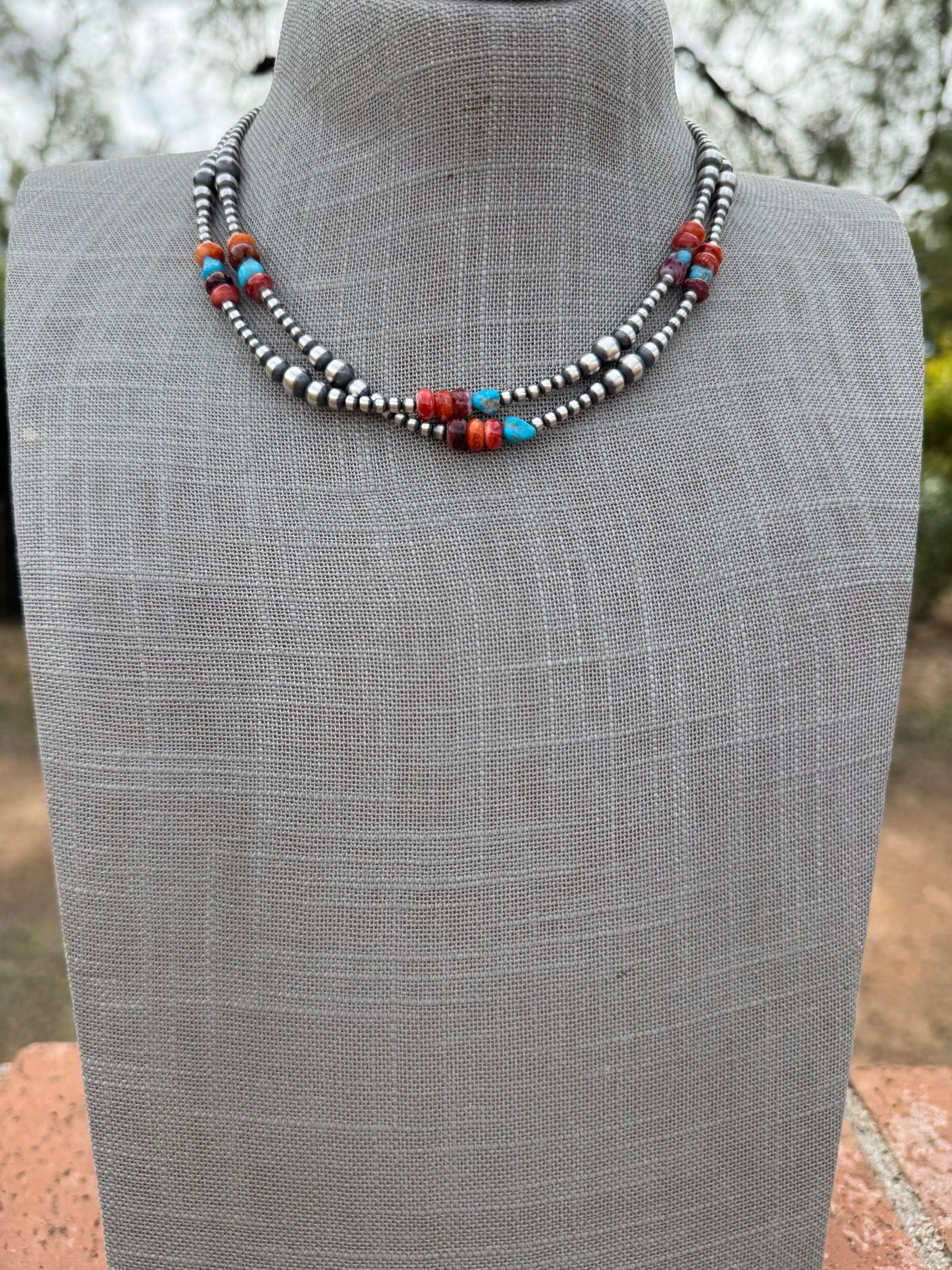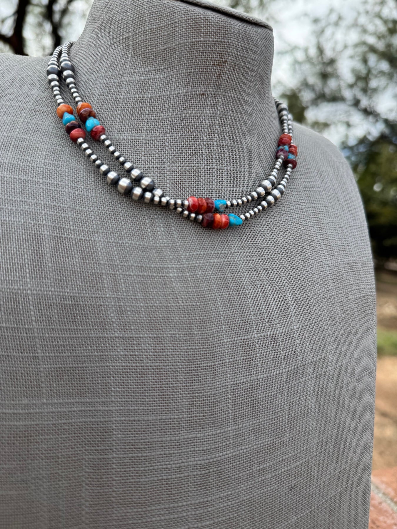 Gorgeous Handcrafted Multi Stone and Sterling Silver Beaded Necklace. Beads measure 3-6mm, Necklace measures 16 inches long. Perfect for any collection. Such a beautiful necklace! This listing is for 1 strand only, multiples are for display.