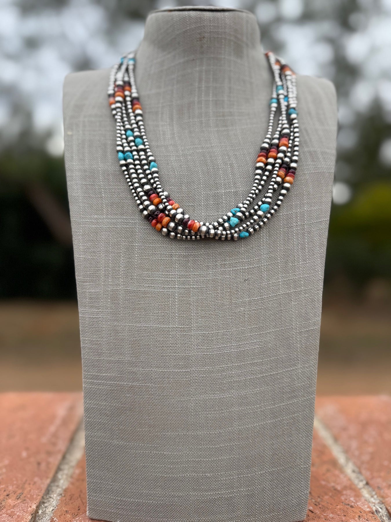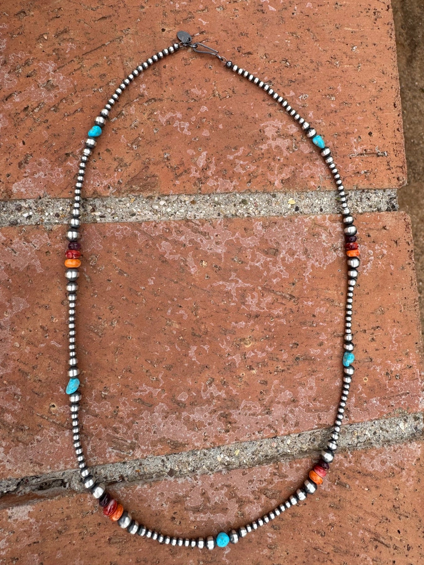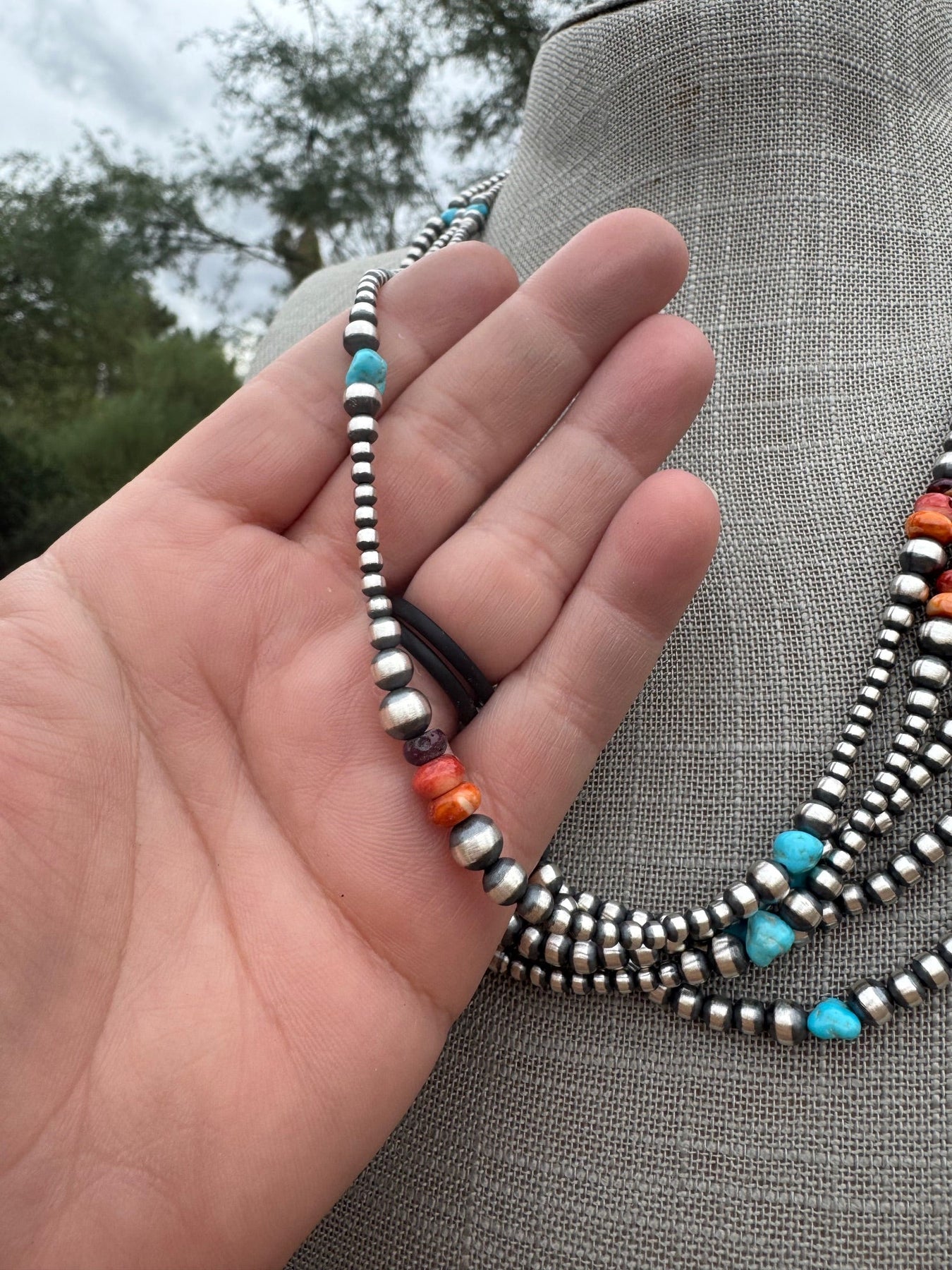 Gorgeous Handcrafted Multi Stone and Sterling Silver Beaded Necklace. Beads measure 3-6mm, Necklace measures 22 inches long. Perfect for any collection. Such a beautiful necklace! This listing is for 1 strand only, multiples are for display.
