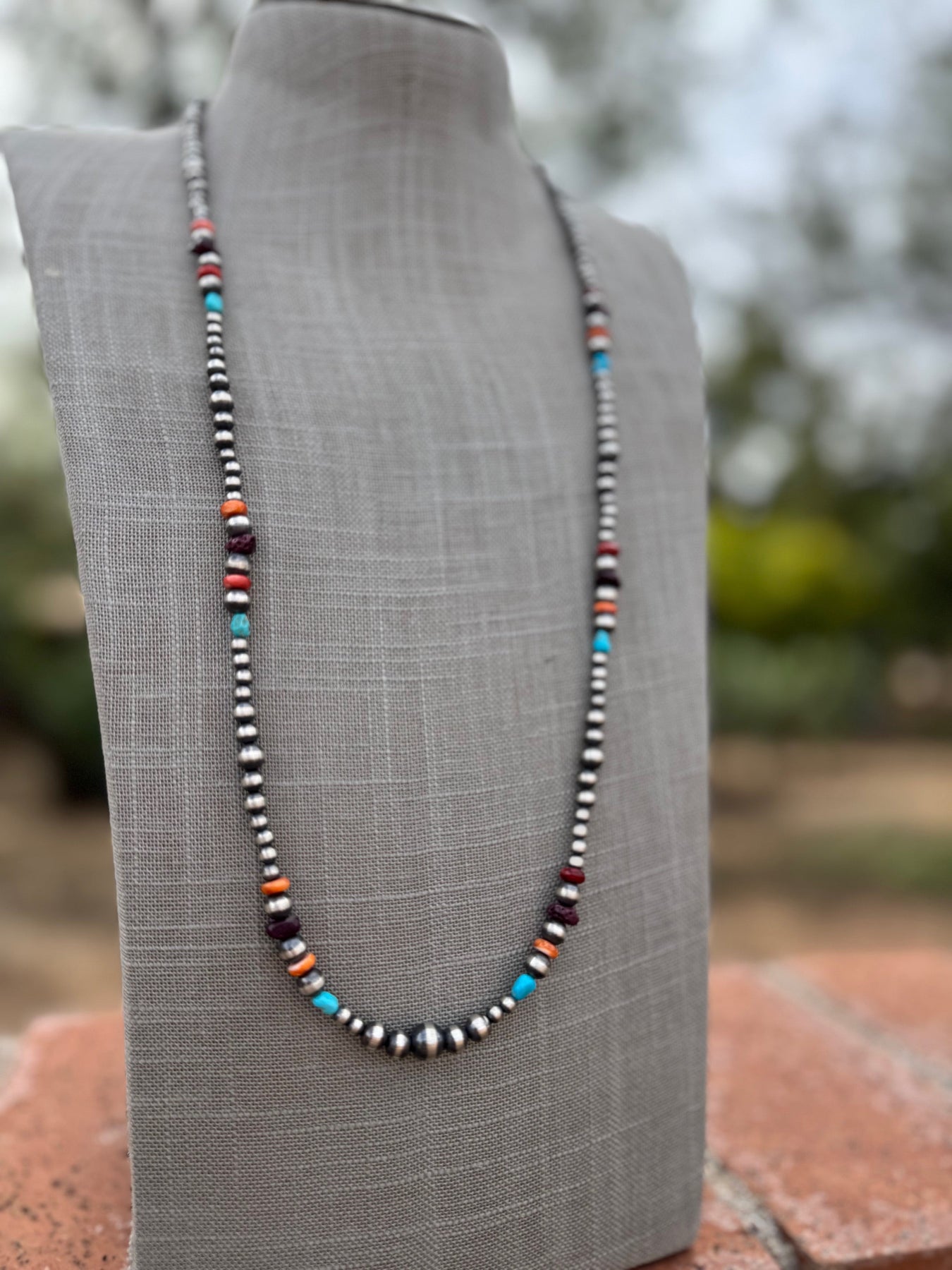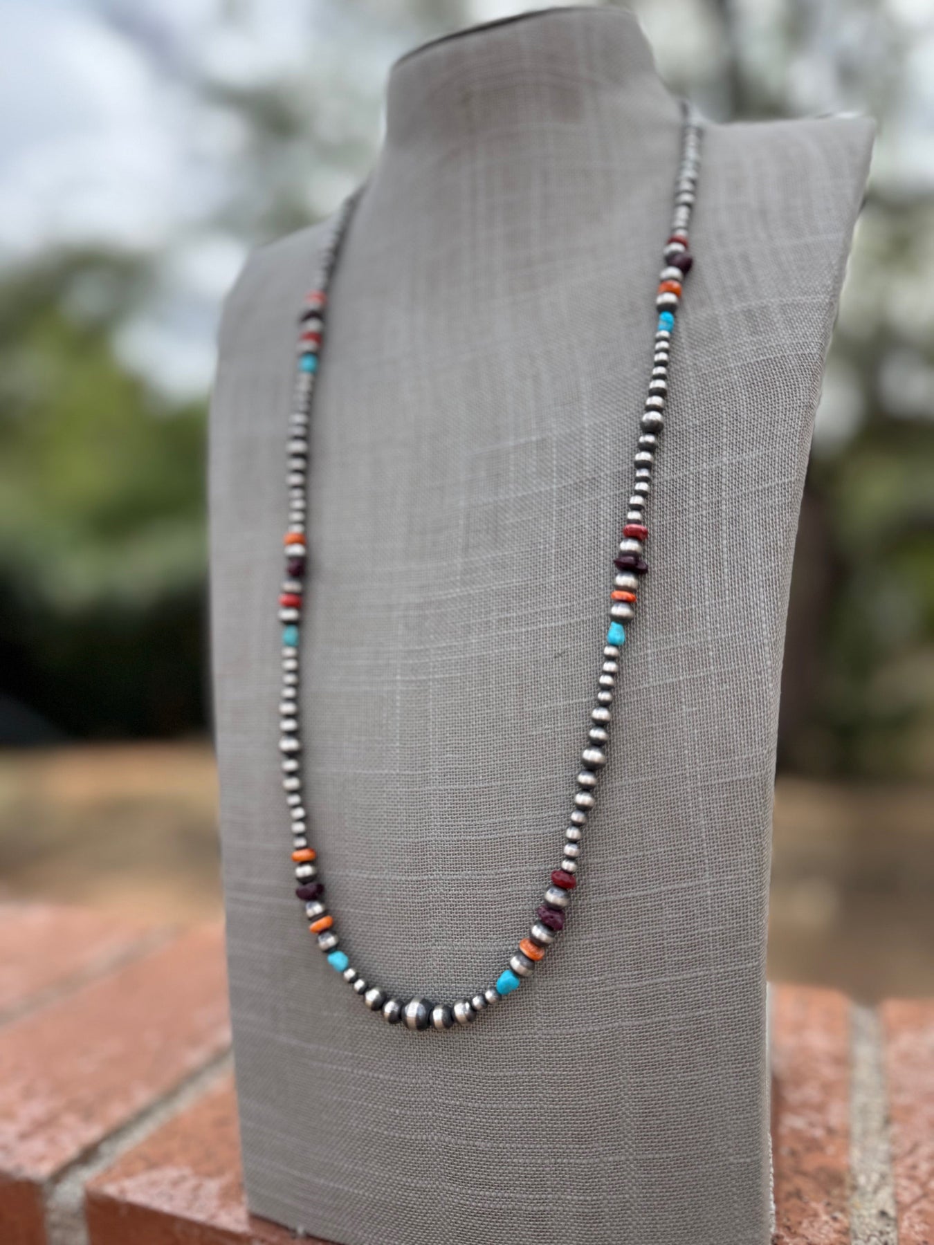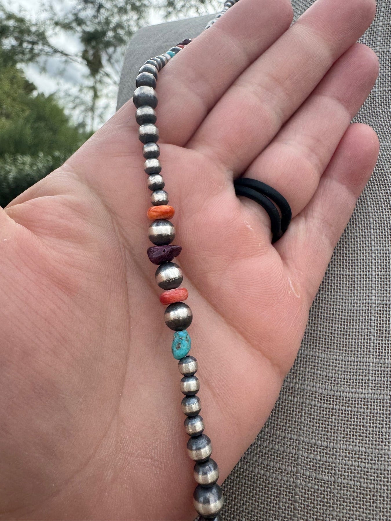 Gorgeous Handcrafted Multi Stone and Sterling Silver Beaded Necklace. Beads measure 4-8mm, Necklace measures 30 inches long. Perfect for any collection. Such a beautiful necklace! This listing is for 1 strand only, multiples are for display.