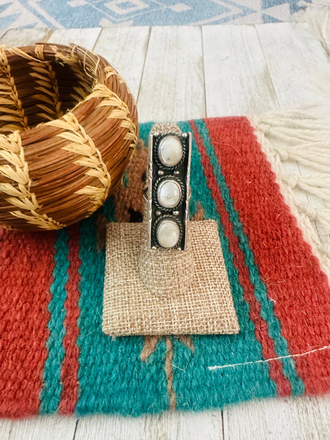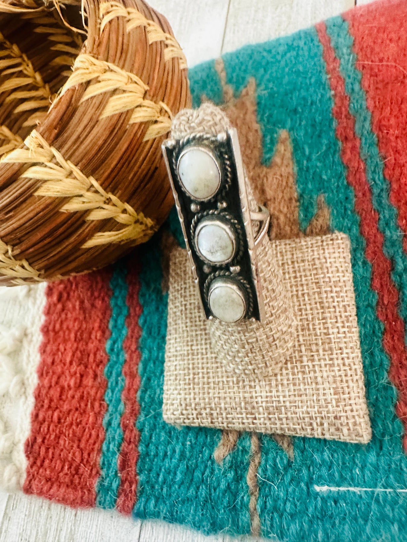 Beautiful Old Pawn handcrafted Mother of Pearl and Sterling Silver Ring. Size 6. Excellent vintage condition! Measures 1 3/4 inches long and 1/2 of an inch wide. Great ring!