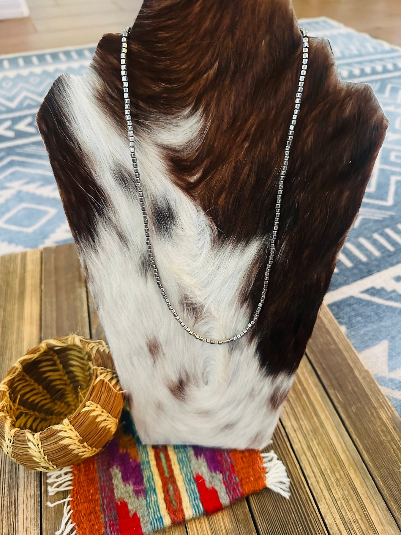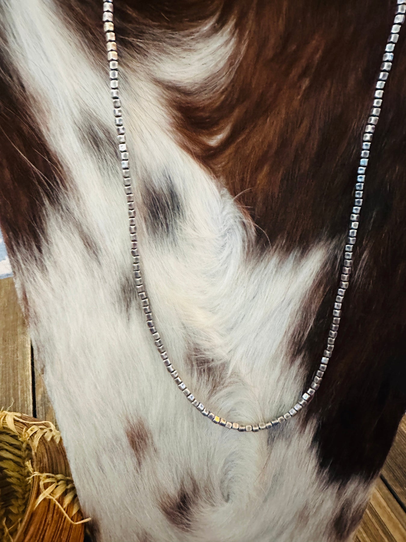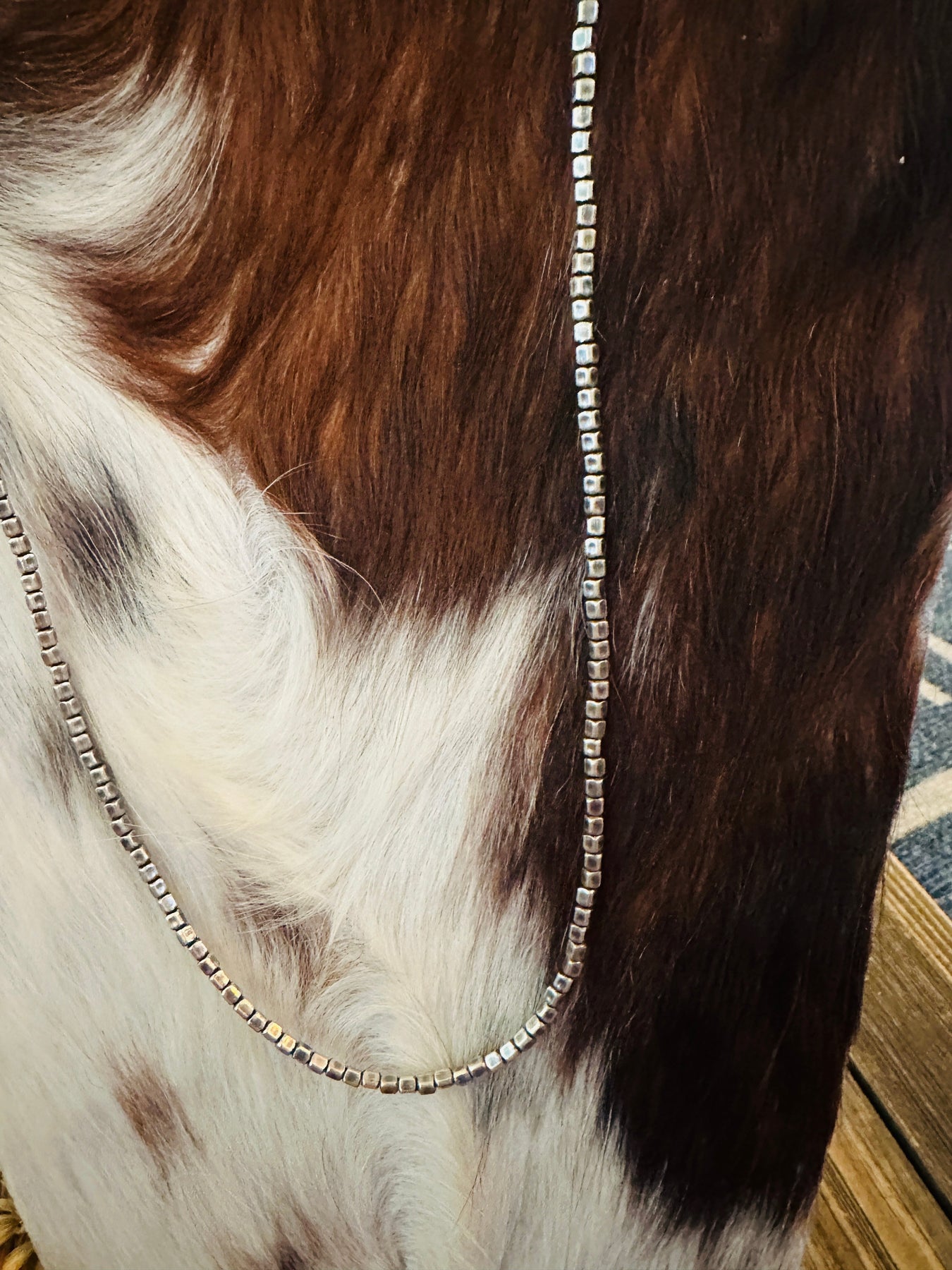 Handcrafted Sterling Silver Box Pearl Beaded 22” Necklace