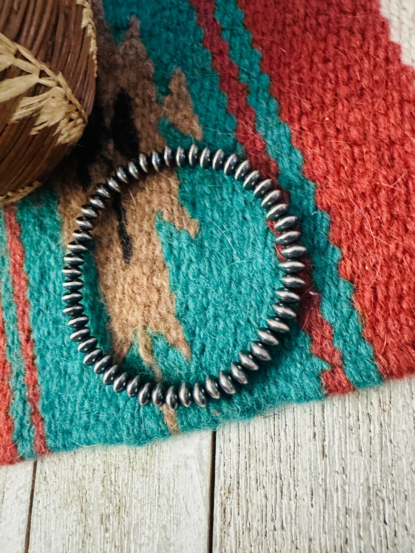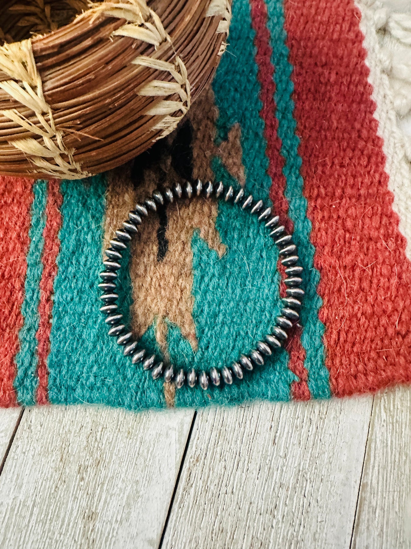 Beautiful handcrafted Sterling Silver 5mm Saucer Bead Stretch Bracelet. Perfect for stacking! Stretchy to fit most wrist sizes.