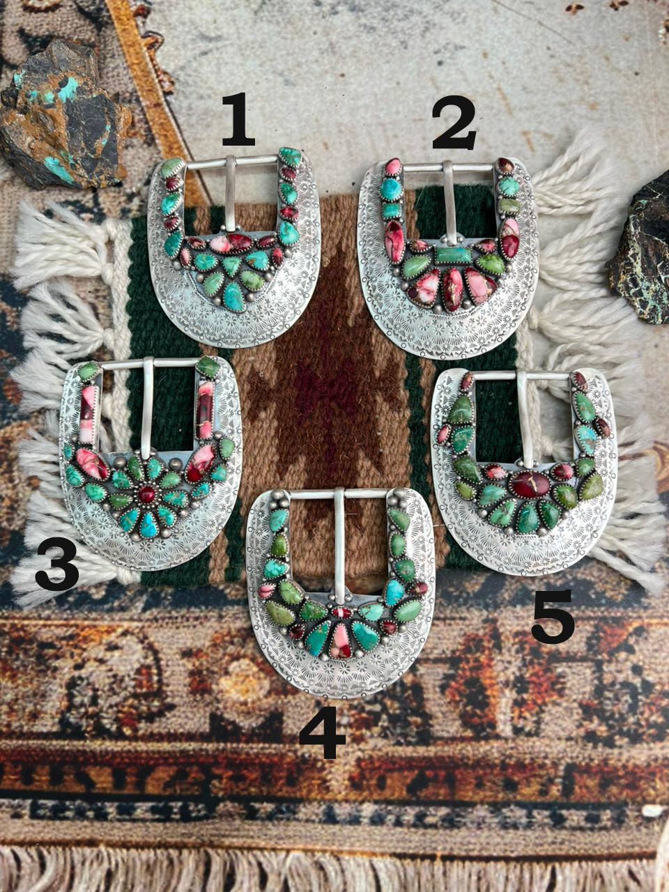 Beautiful Handmade Dahlia Rose with Emerald Valley Turquoise Buckle measures Length 3 3/8" and Width 3".