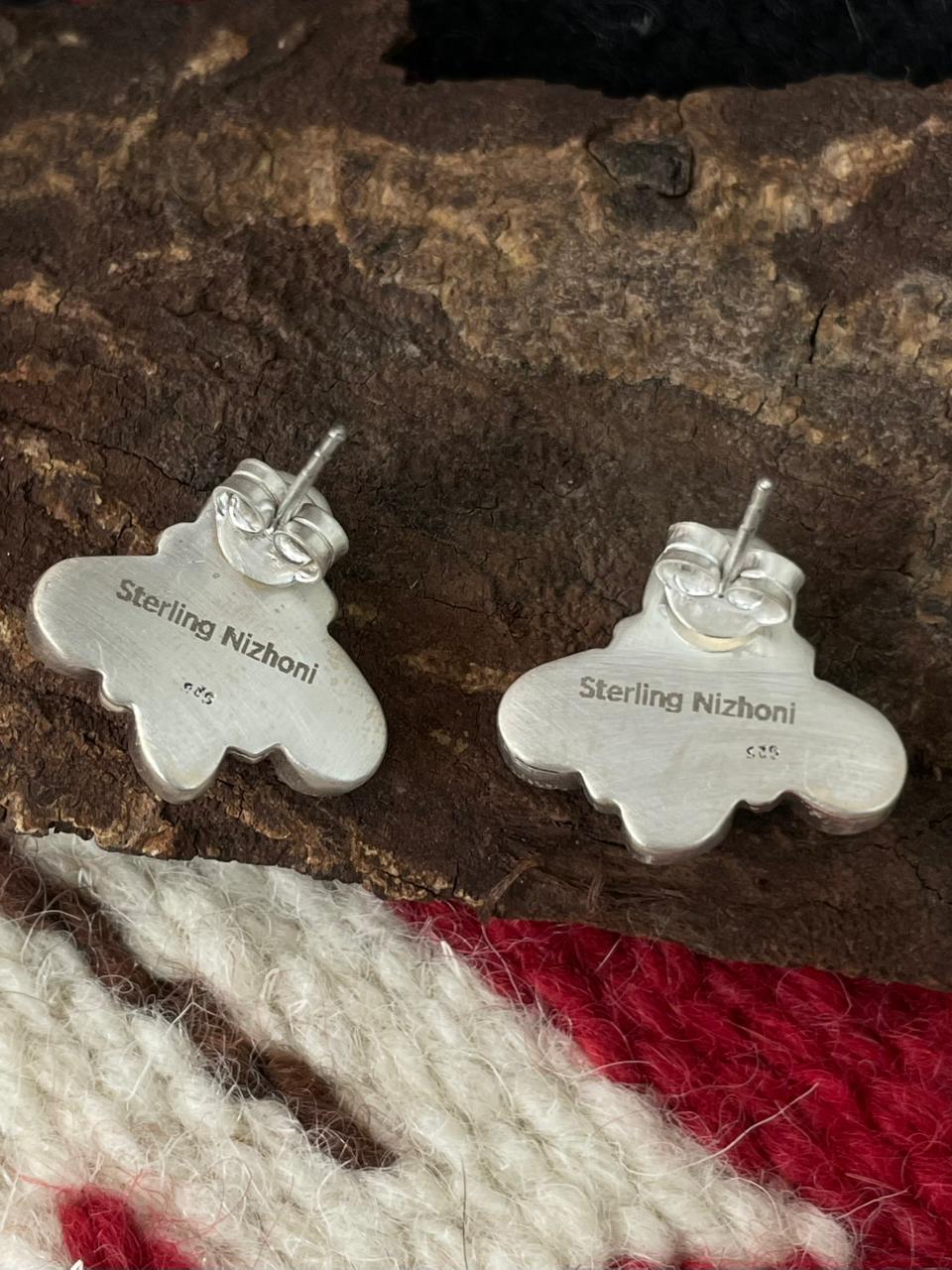 Handmade Sterling Silver Dahlia Rose with Emerald Valley Turquoise Post Earrings "Signed Nizhoni"
