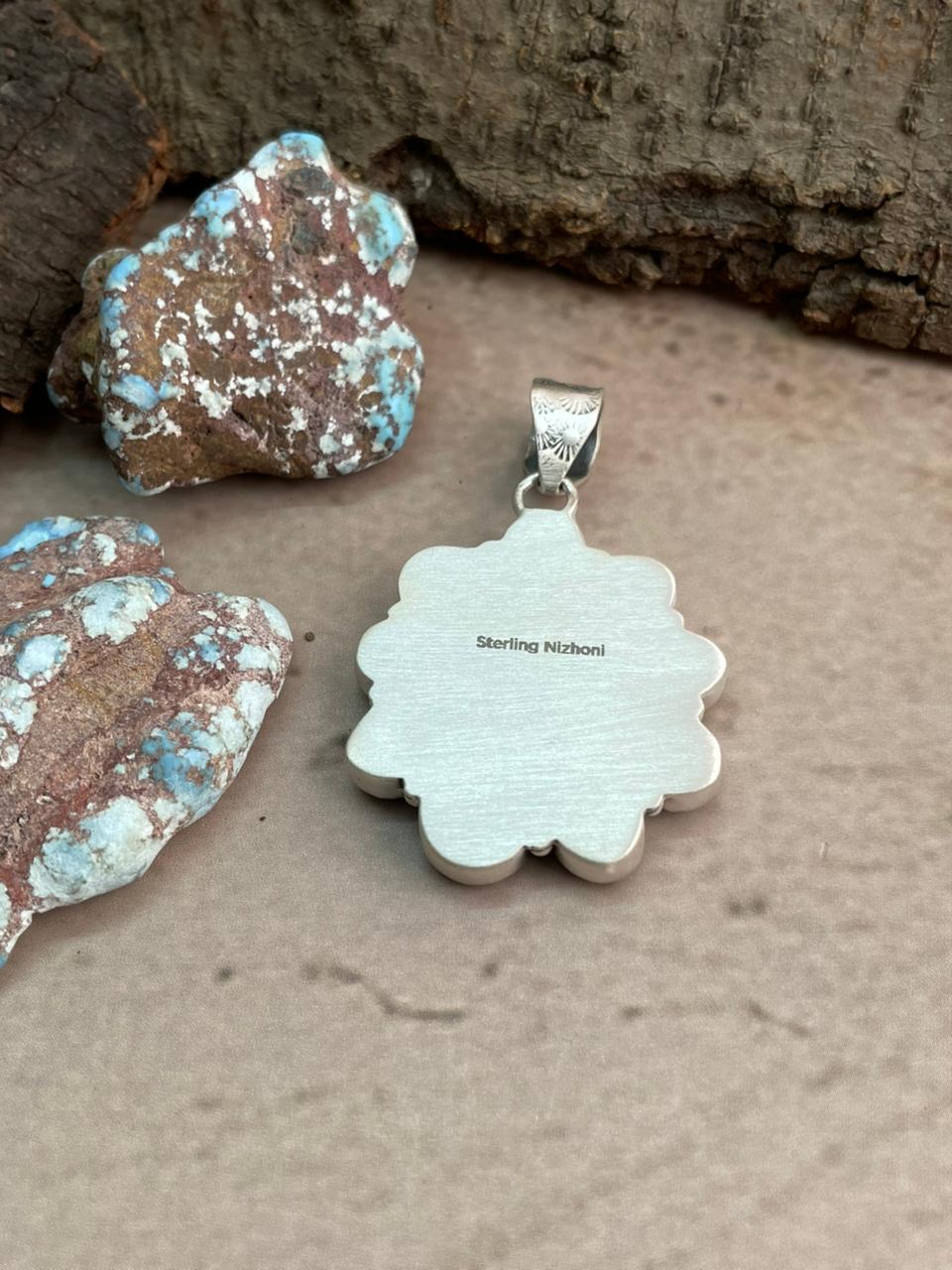 Handmade Sterling Silver Emerald Valley Turquoise Pendant with Signed Nizhoni