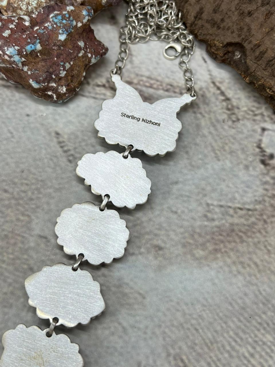 Such gorgeous craftsmanship! Sterling Silver Lander Turquoise Necklace Measures Length 16+3" Extension, Width 1 1/8" with an additional drop of 6".