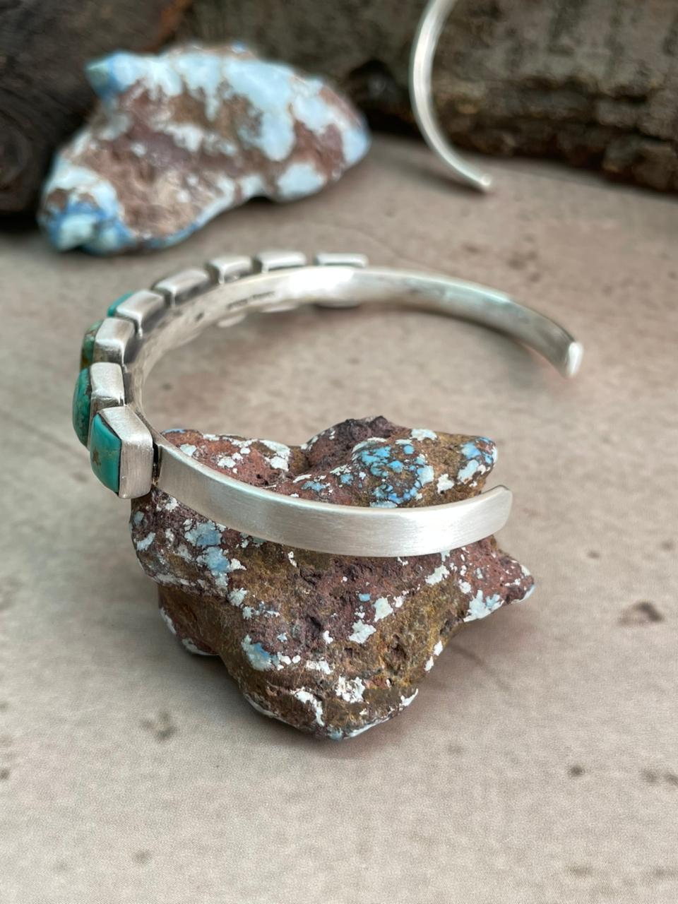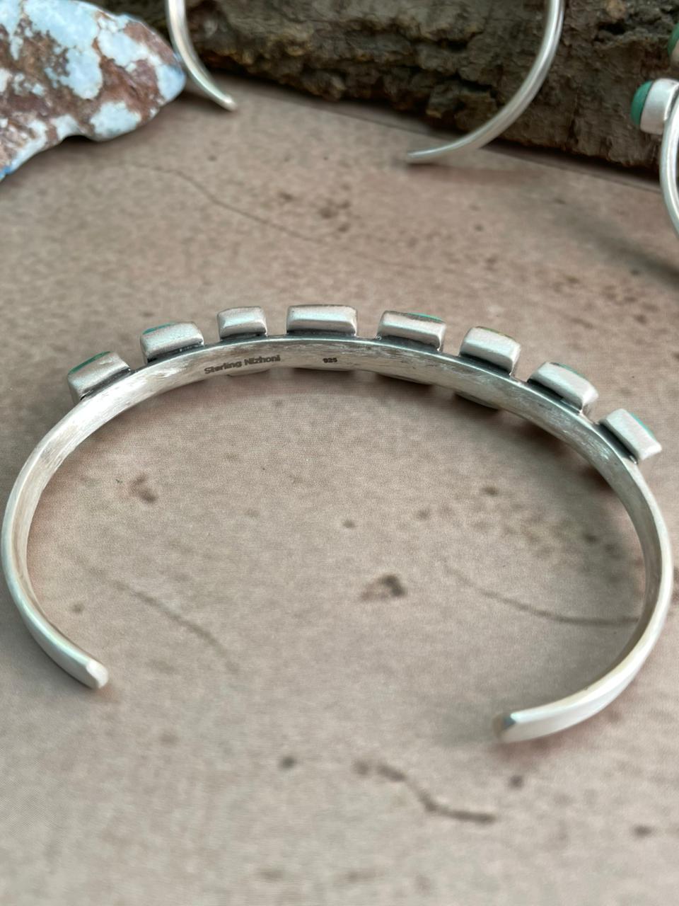 Handmade Sterling Silver Mantis Turquoise Cuff Bracelet with Signed Nizhoni