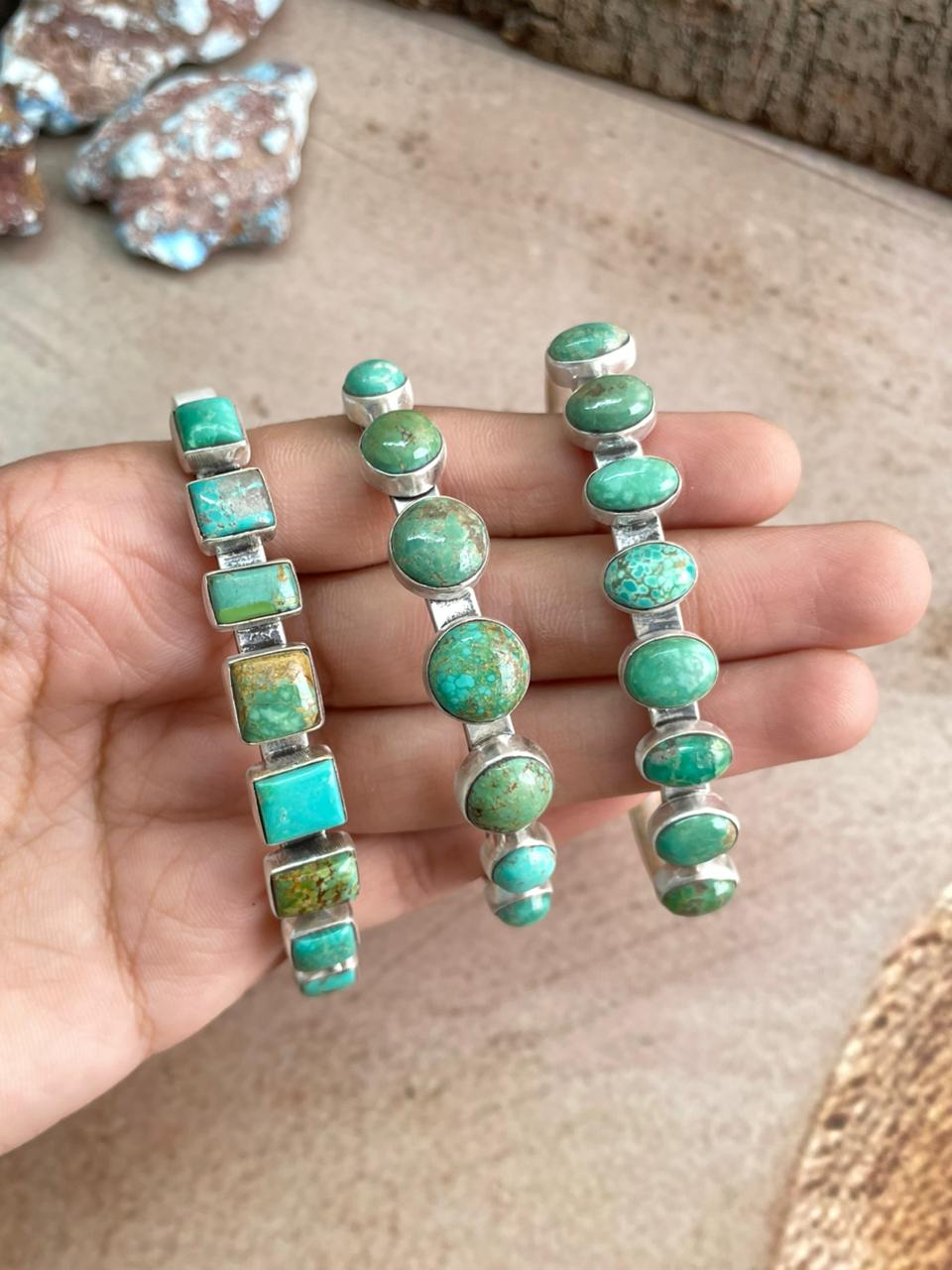Handmade Turquoise and Sterling Silver Cuff Bracelet. Beautiful craftsmanship! Cuff has an inside Circumference of 5 4/8 (Adjustable) with 1 inch gap.