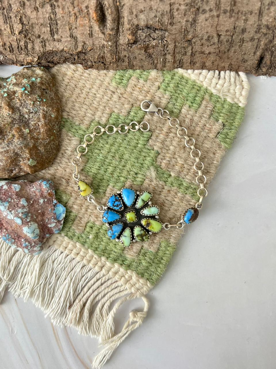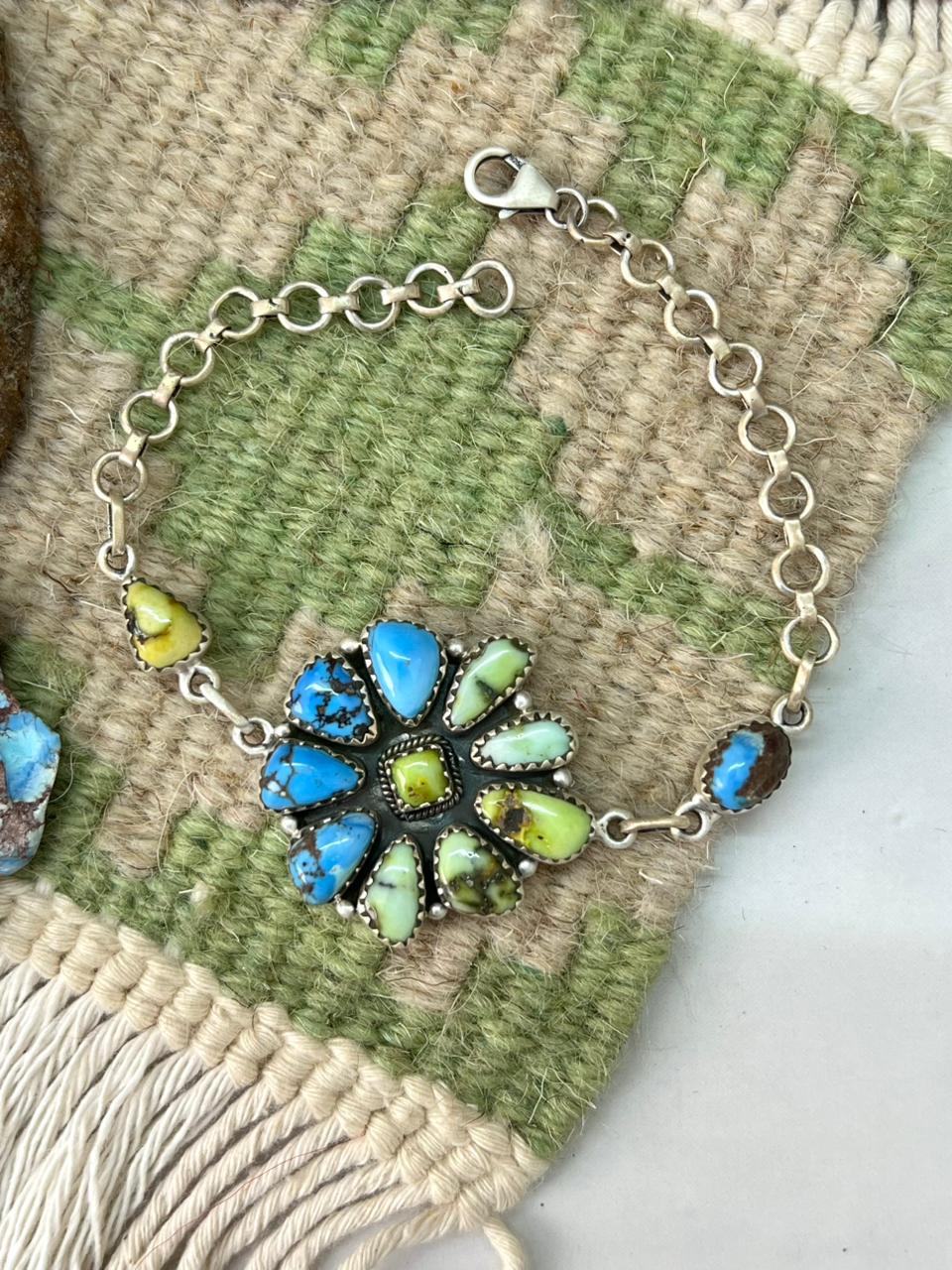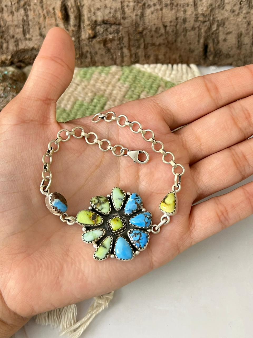 Handmade Sterling Silver Palomino with Golden Hills Turquoise Chain Bracelet "Signed Nizhoni"
