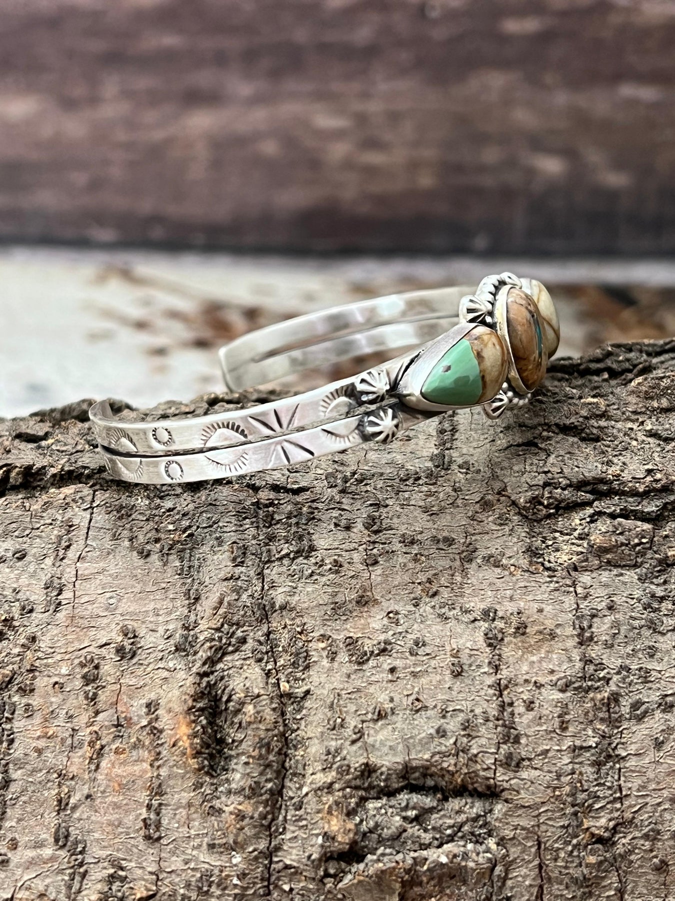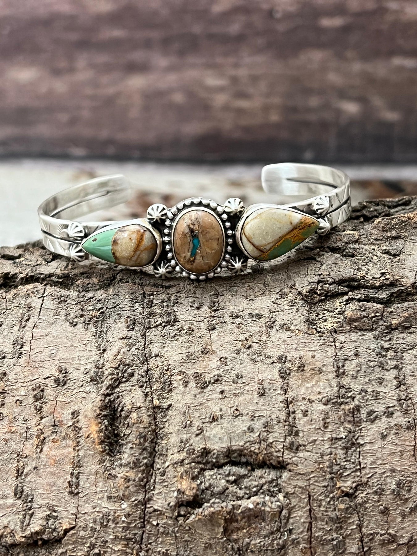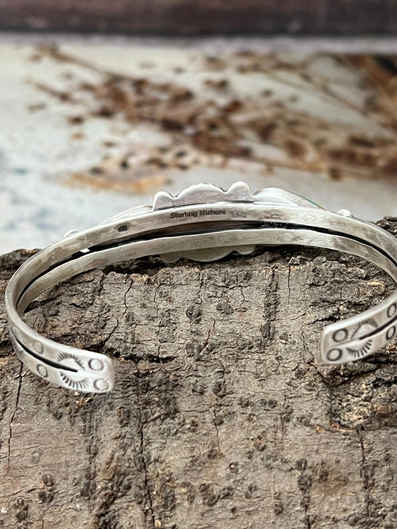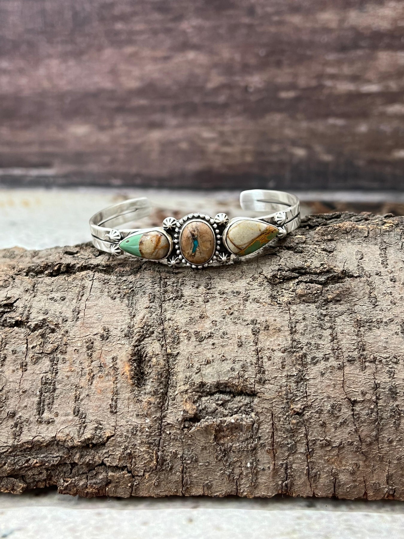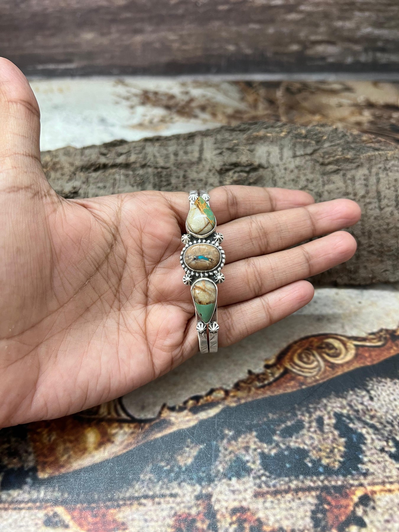 Handmade Royston Ribbon Turquoise and Sterling Silver Cuff Bracelet. Beautiful craftsmanship! Cuff has an inside Circumference of 7 (Adjustable) with 1 inch gap.
