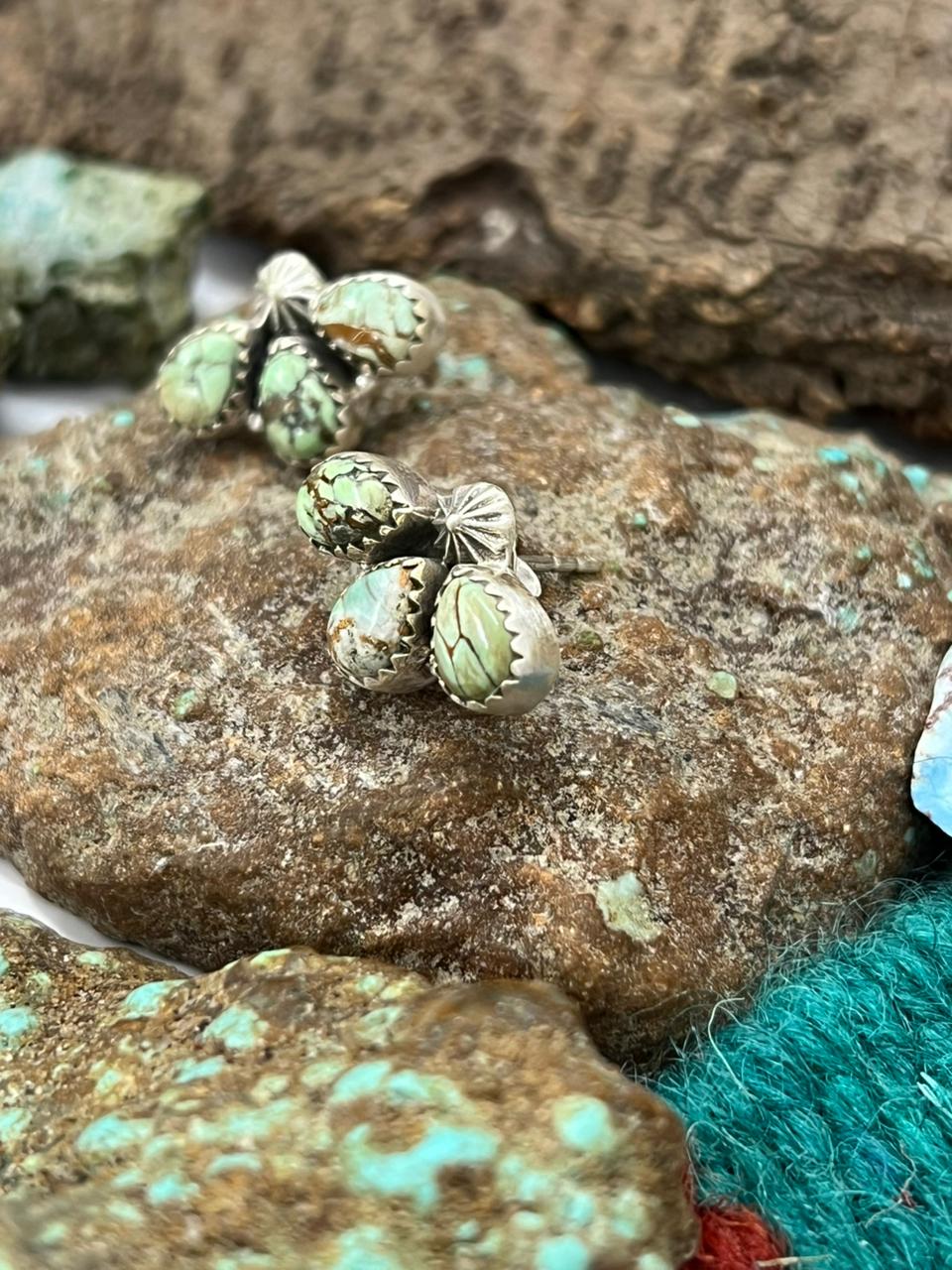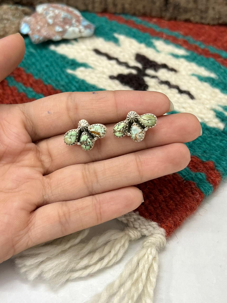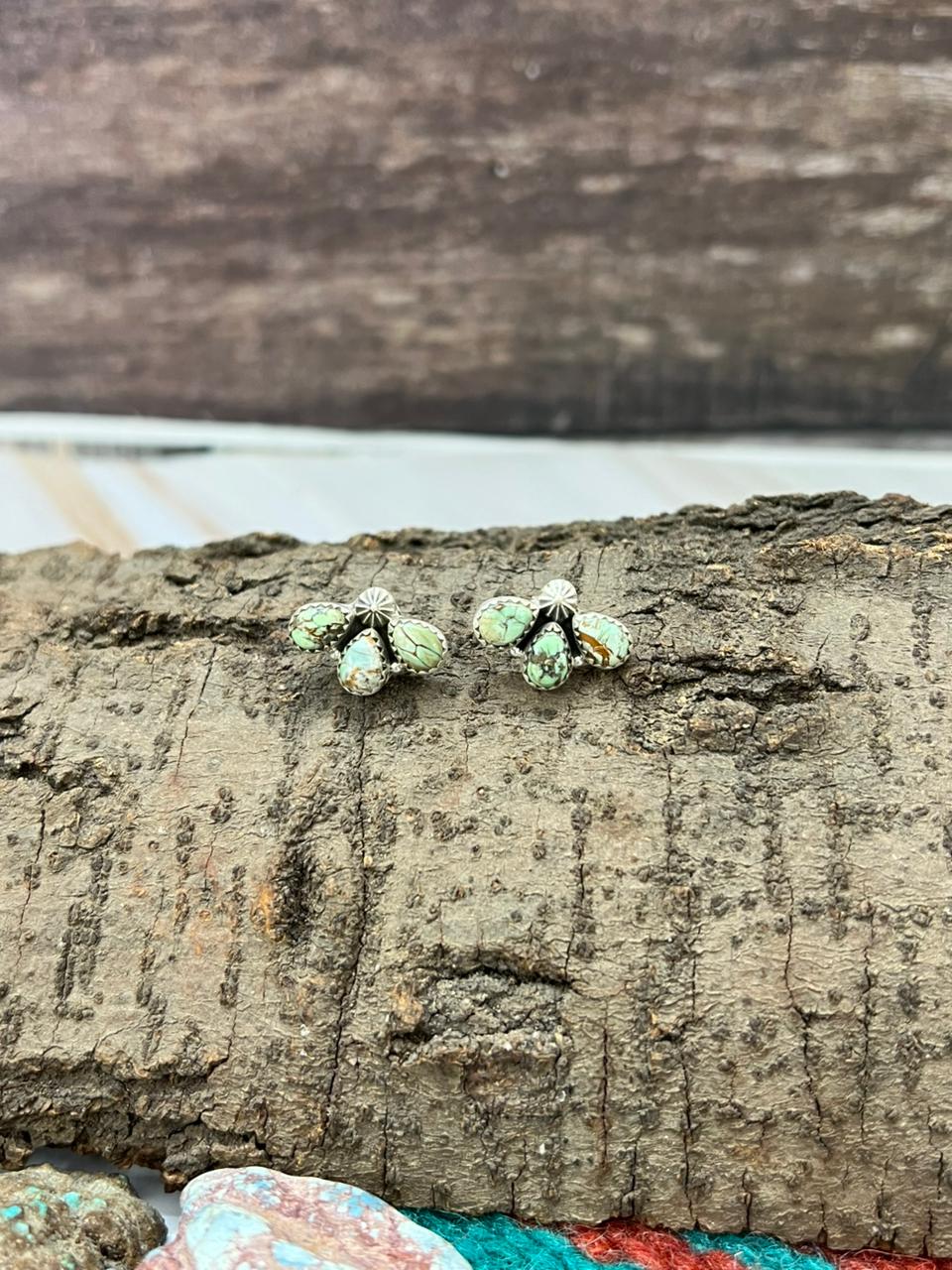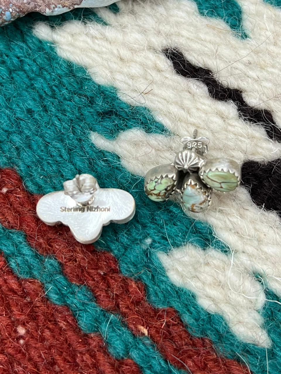Handmade Sterling Silver Variscite Post Studs "Signed Nizhoni"