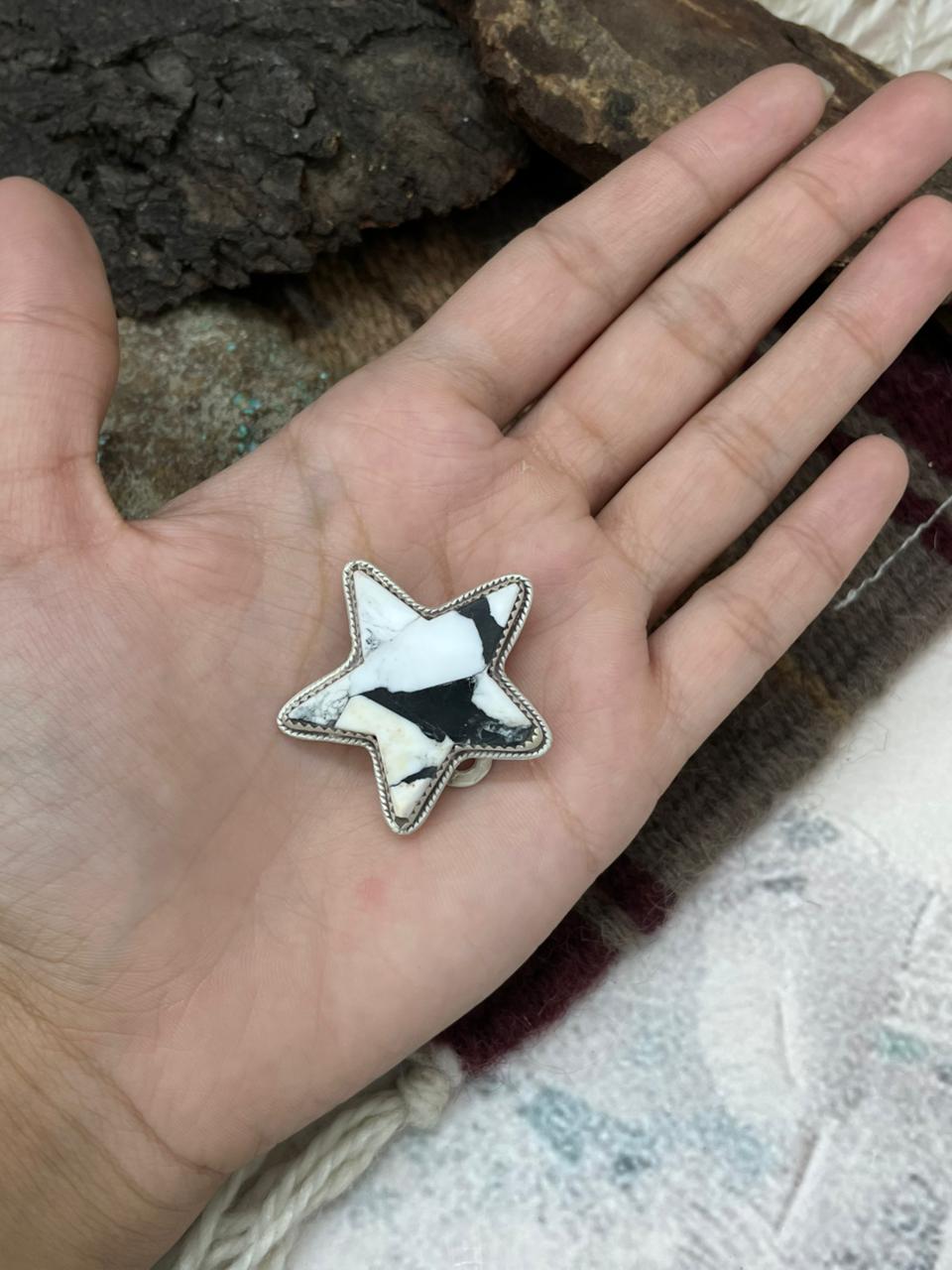 Handmade Sterling Silver White Buffalo Purse Key Clip. Such amazing craftsmanship! This cute, little Purse Key Clip Measures 1 6/8" in length and 1 6/8" wide.
