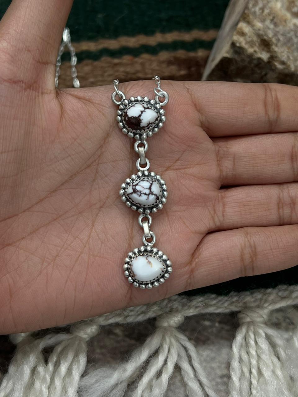 Such gorgeous craftsmanship! Sterling Silver Wild Horse Magnesite Necklace Measures Length 16+2" Extension, Width 6/8" with an additional drop of 2 3/8".
