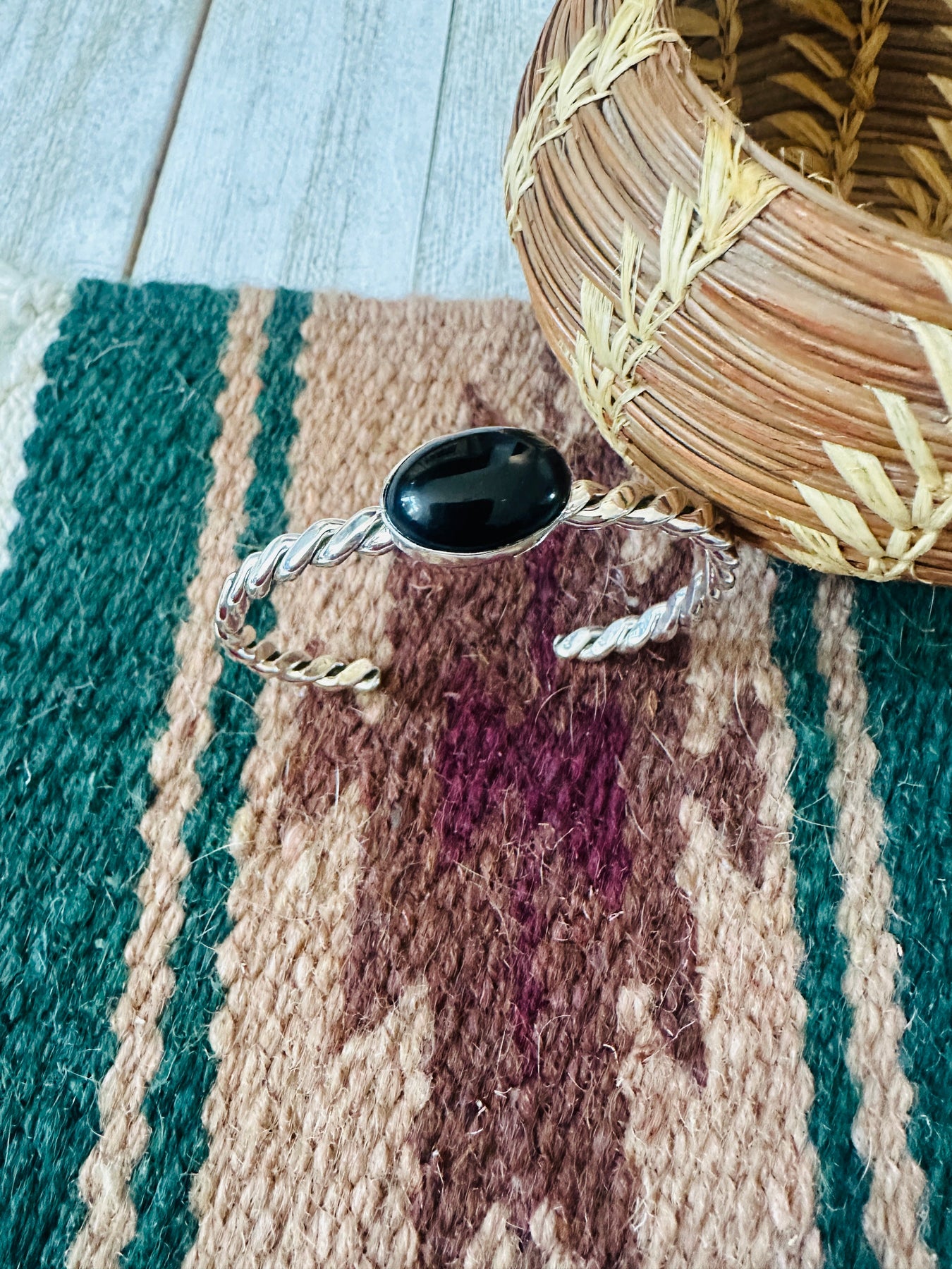 Awesome Navajo Sterling Silver and Black Onyx Cuff Bracelet. Such a beautiful stone in this cuff! Cuff has an inside circumference of 5 1/4 inches with a 1 inch gap. Width is 1/2 of an inch. Signed by the artist.