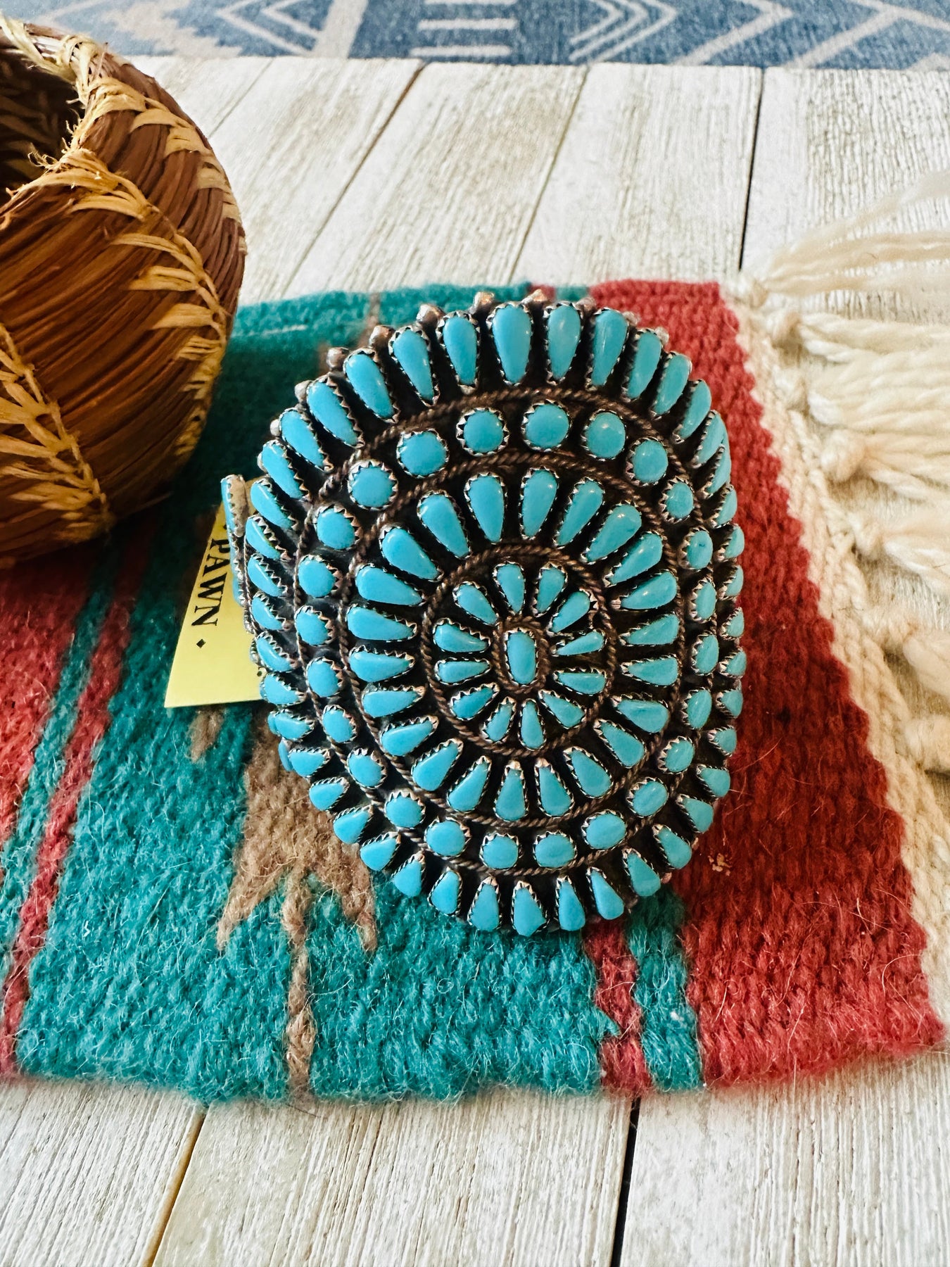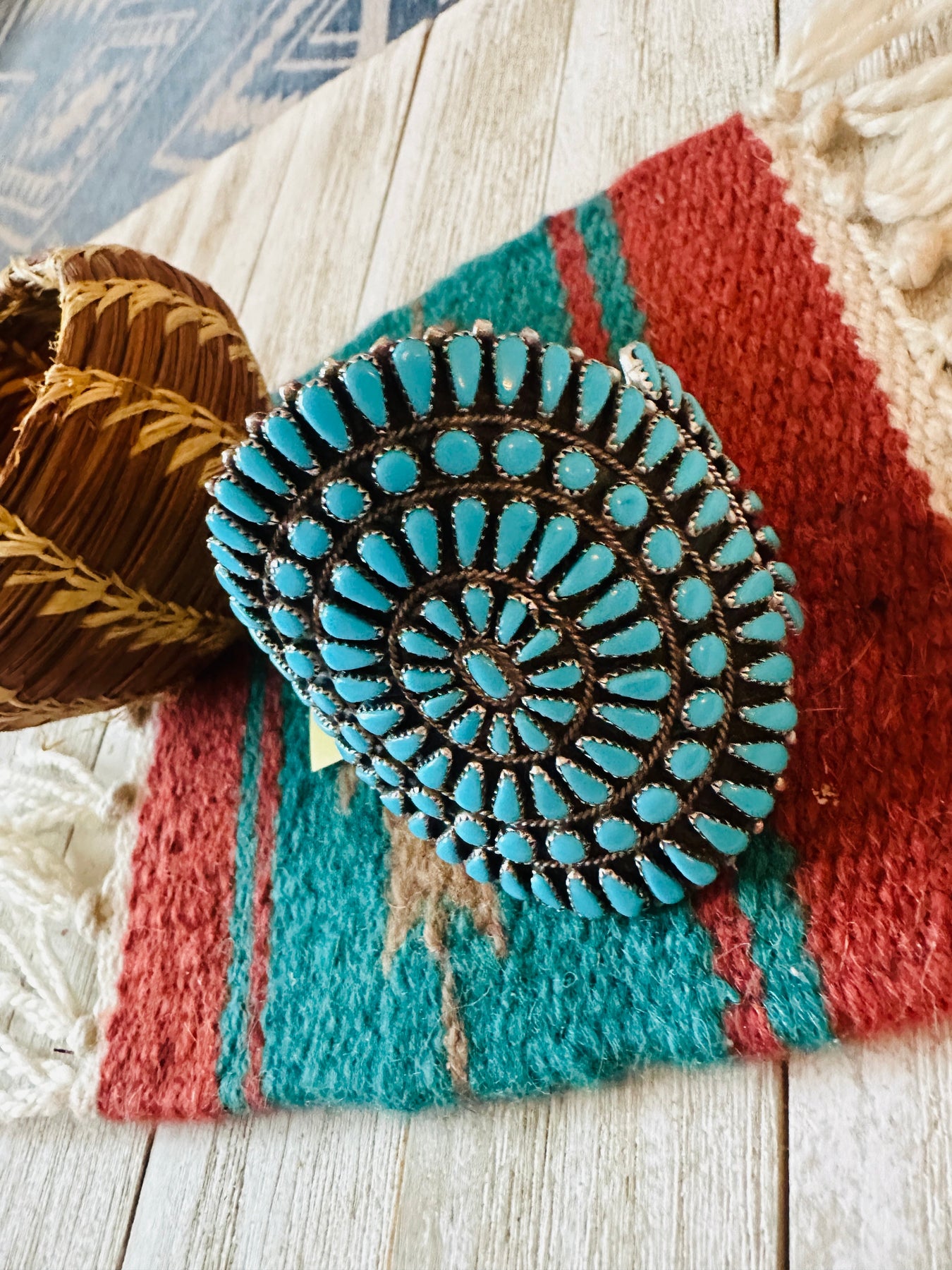 Old Pawn Sterling Silver & Turquoise Cluster Cuff Bracelet /