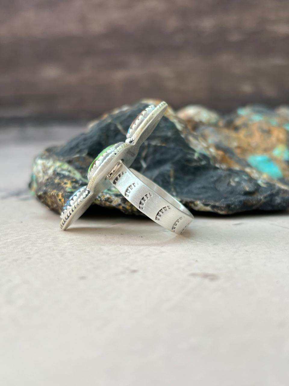 Handmade Sterling Silver Sonoran Mountain with Golden Hills Turquoise Adjustable Ring "Signed Nizhoni"