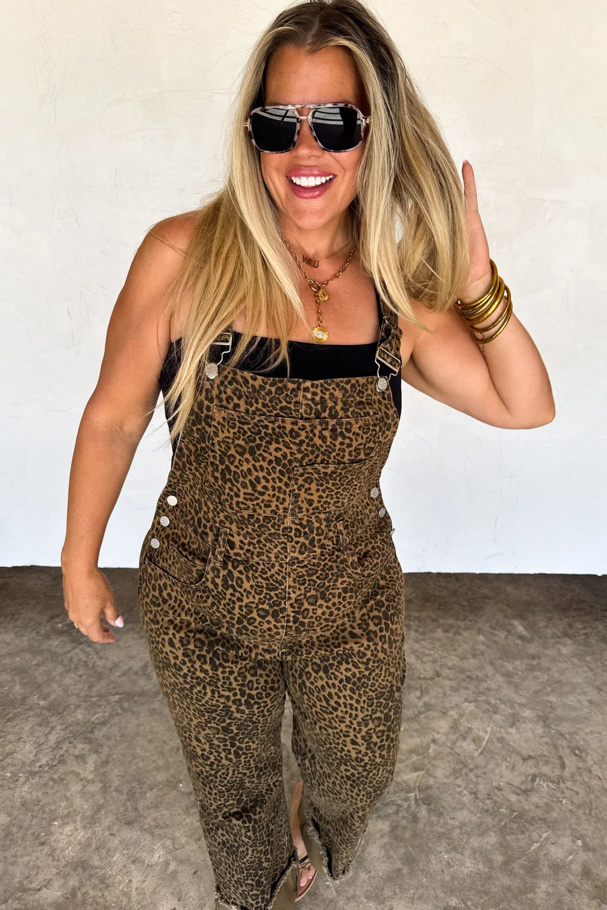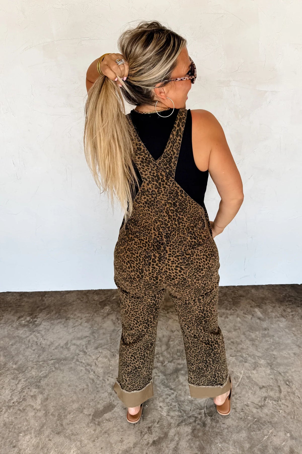Step into effortless style with our STRETCHY Dahlia Crop Wide leg Overalls! Now available in our stunning CHEETAH PRINT denim fabric! Such a flattering fit and all-day comfort! Features a front bib pocket, adjustable straps, back pockets, belt loops and a raw hem. Cut the hem to your preferred length or roll them up for a cropped look